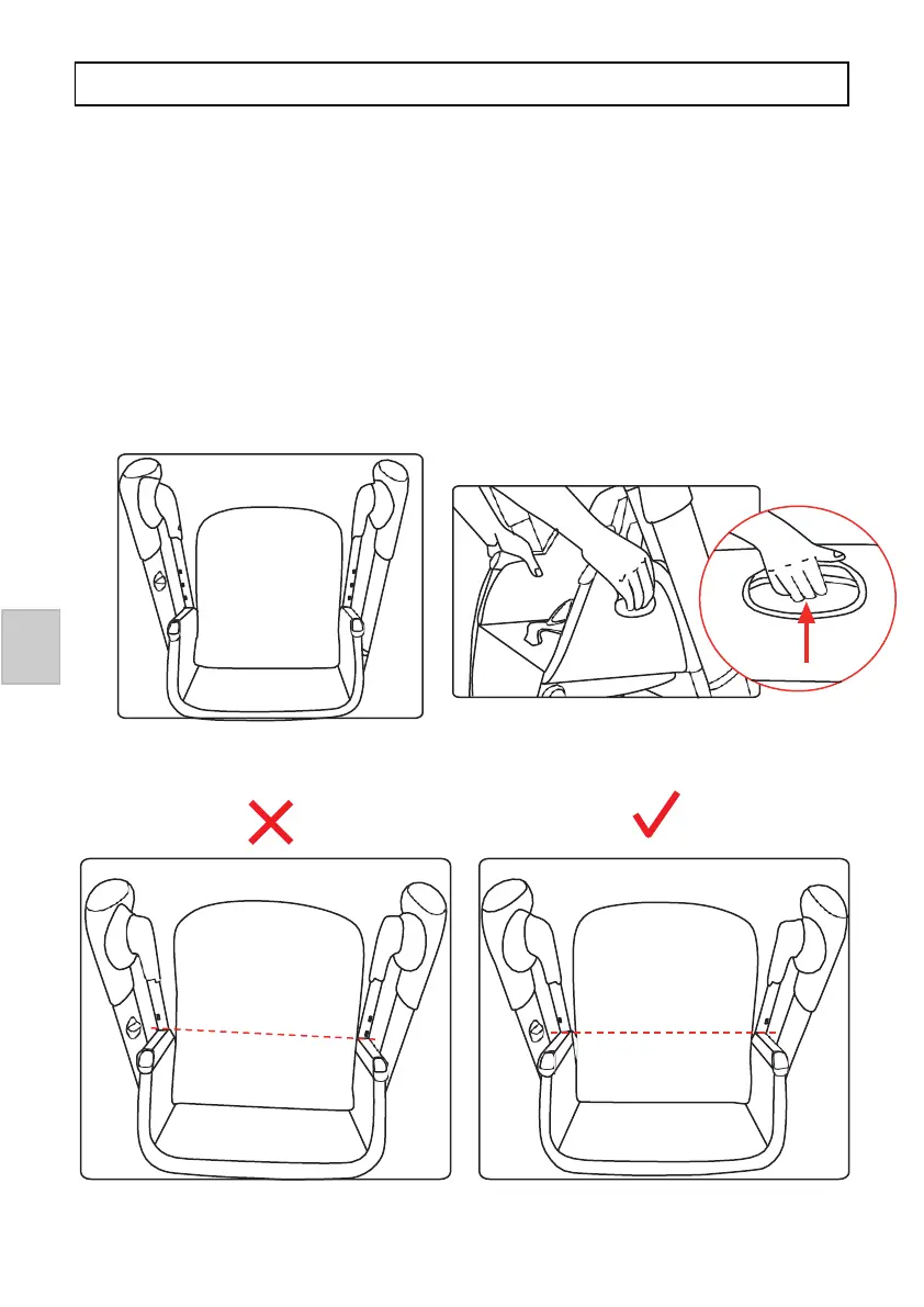 1. Para ajustar la altura del asiento, presione en ambos lados del asiento en el botón