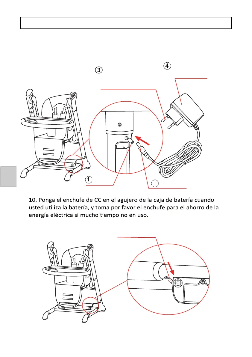 enchufe de CA de 100-240 V 50/60 Hz 0,3 A. Rere el enchufe de CA ③y el