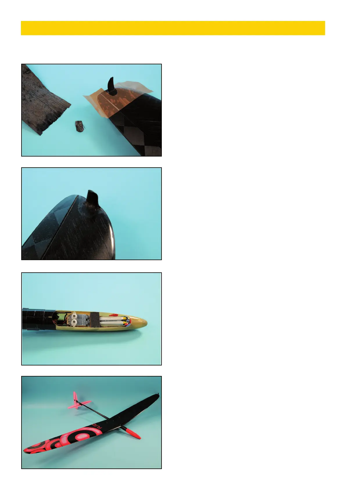 vers le fuselage et sont maintenues à l’aide de scotch