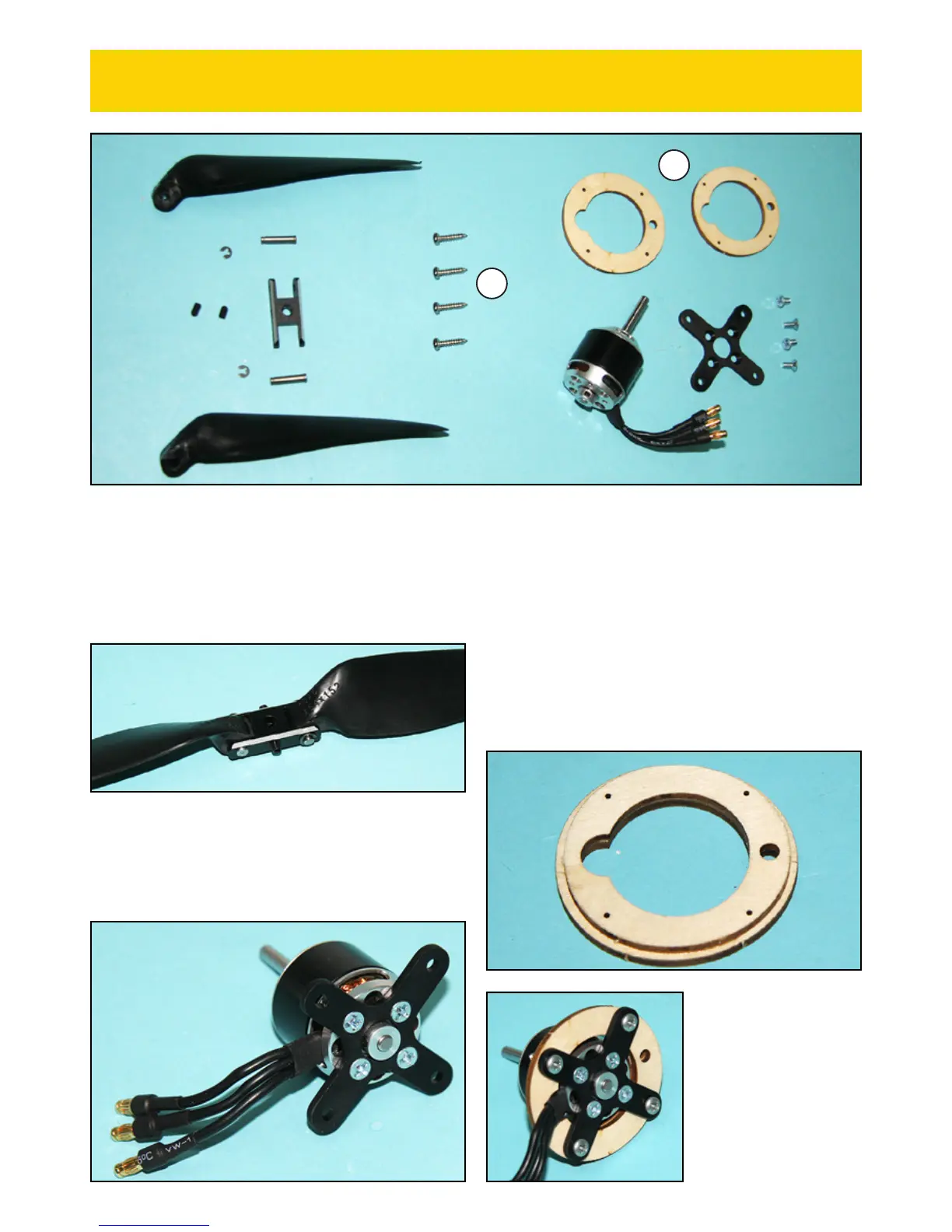 1) Assemblez les pales sur le porte-hélice et placez les vis de