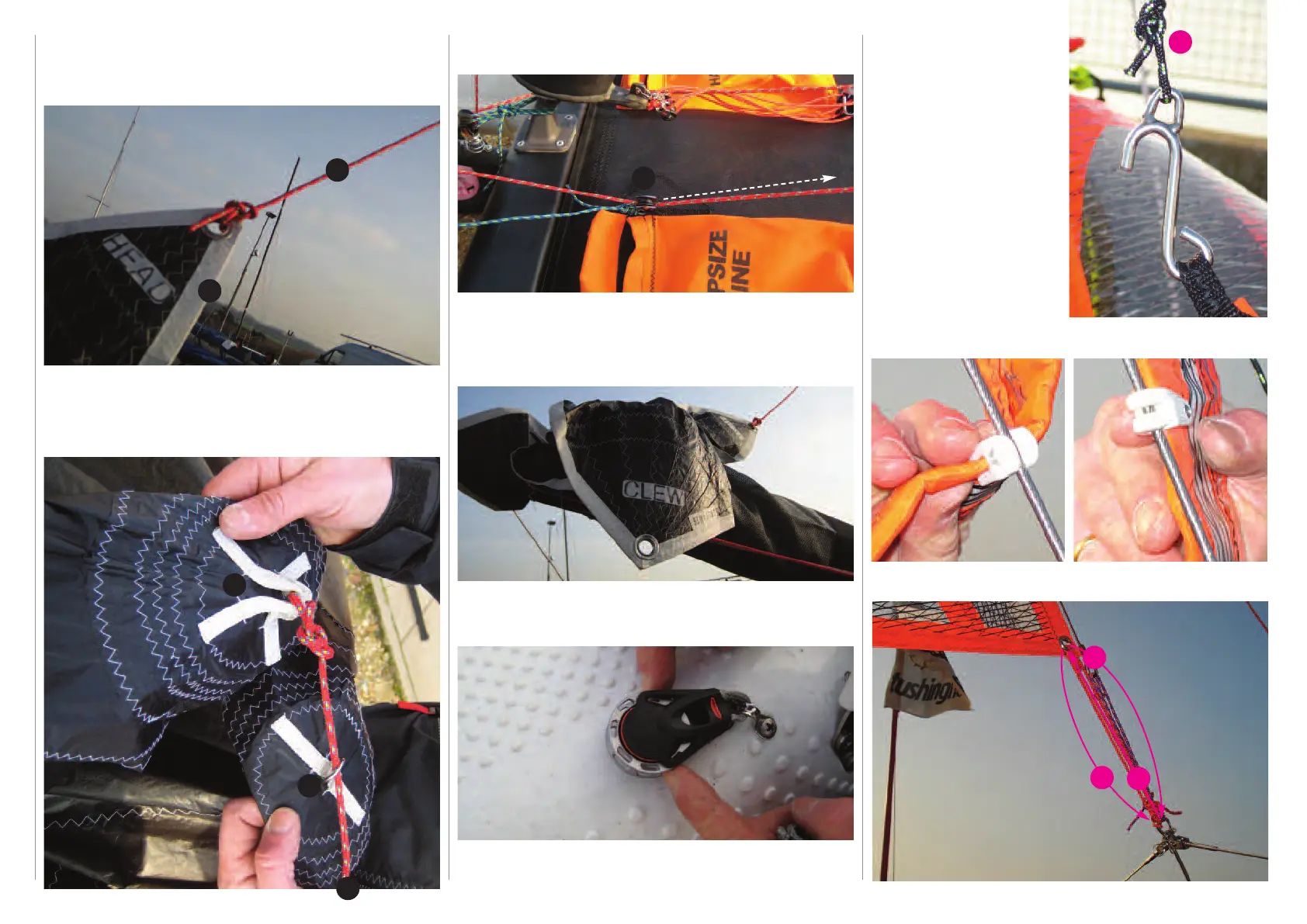 come to the ‘Head’ (1) of the spinnaker sail. Attach Head of sail