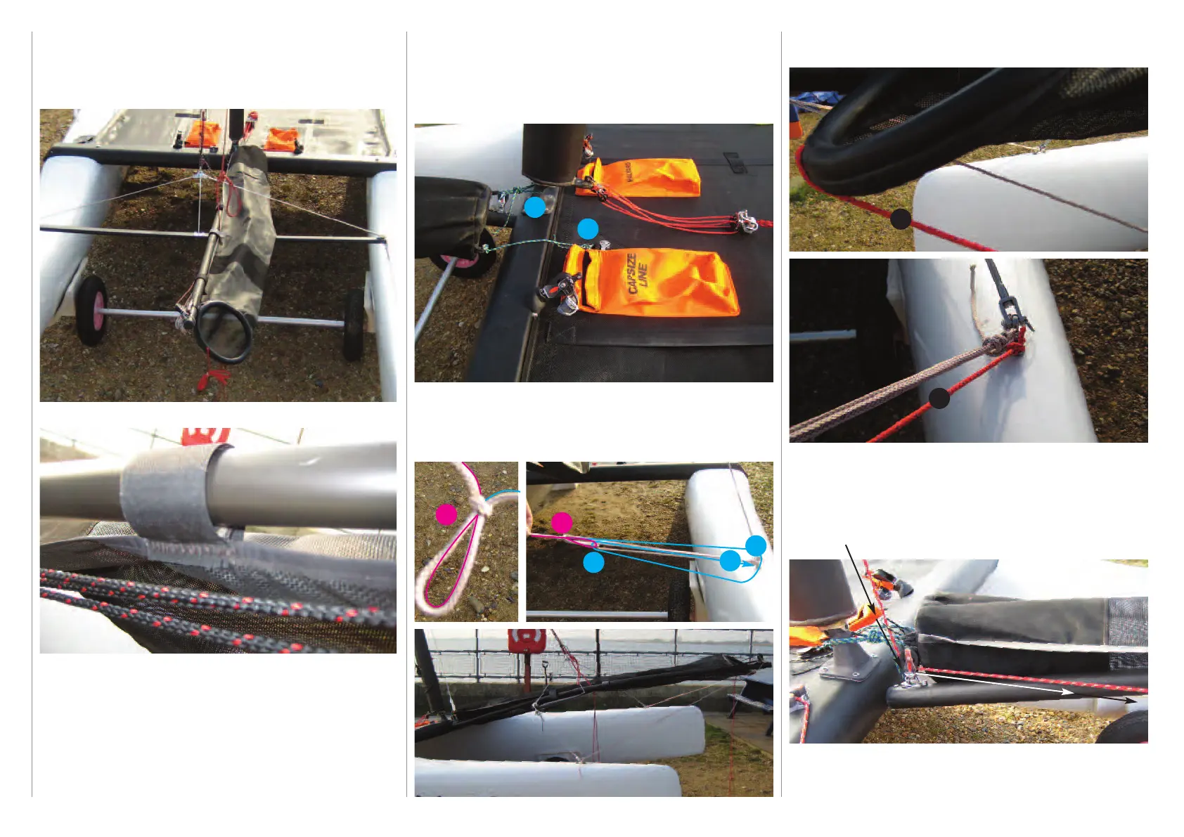 (4) One line attaches to the mast foot. (5) The second line at-