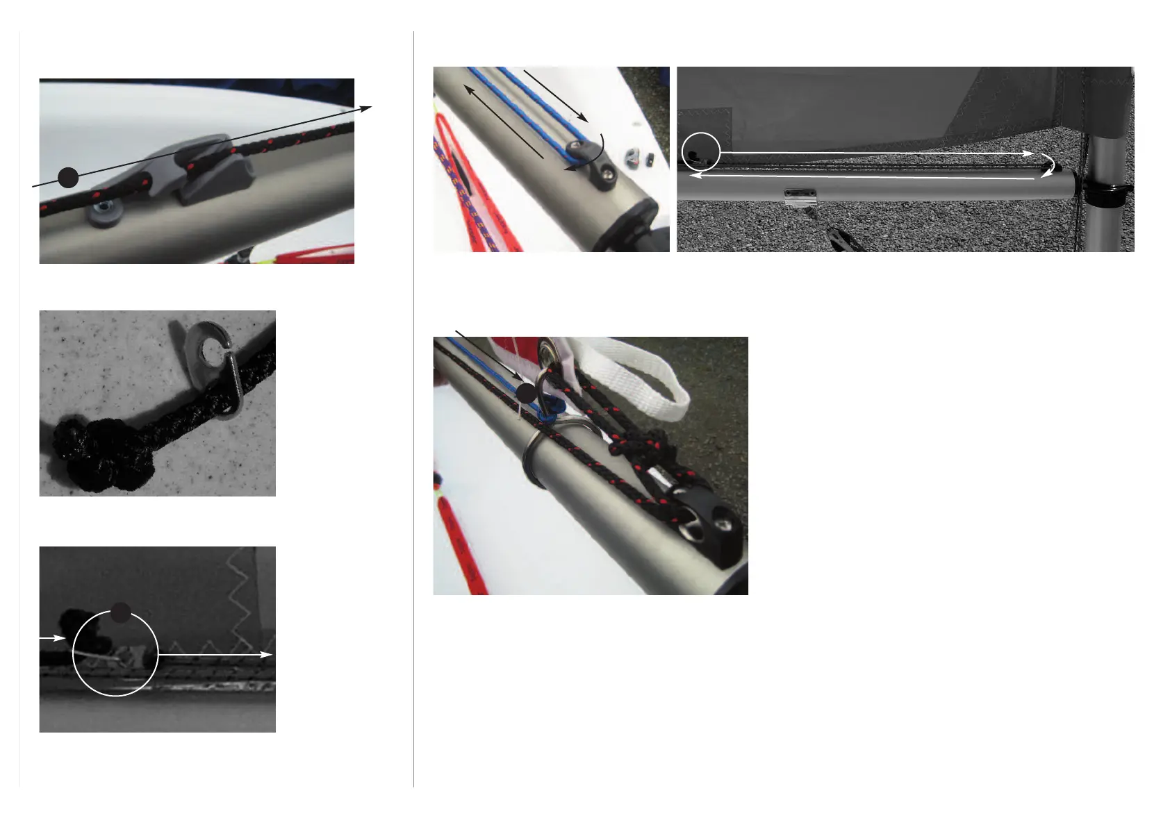8. Then run the shockcord forward along the top of the boom. Feed through the fairlead at the front of the boom.