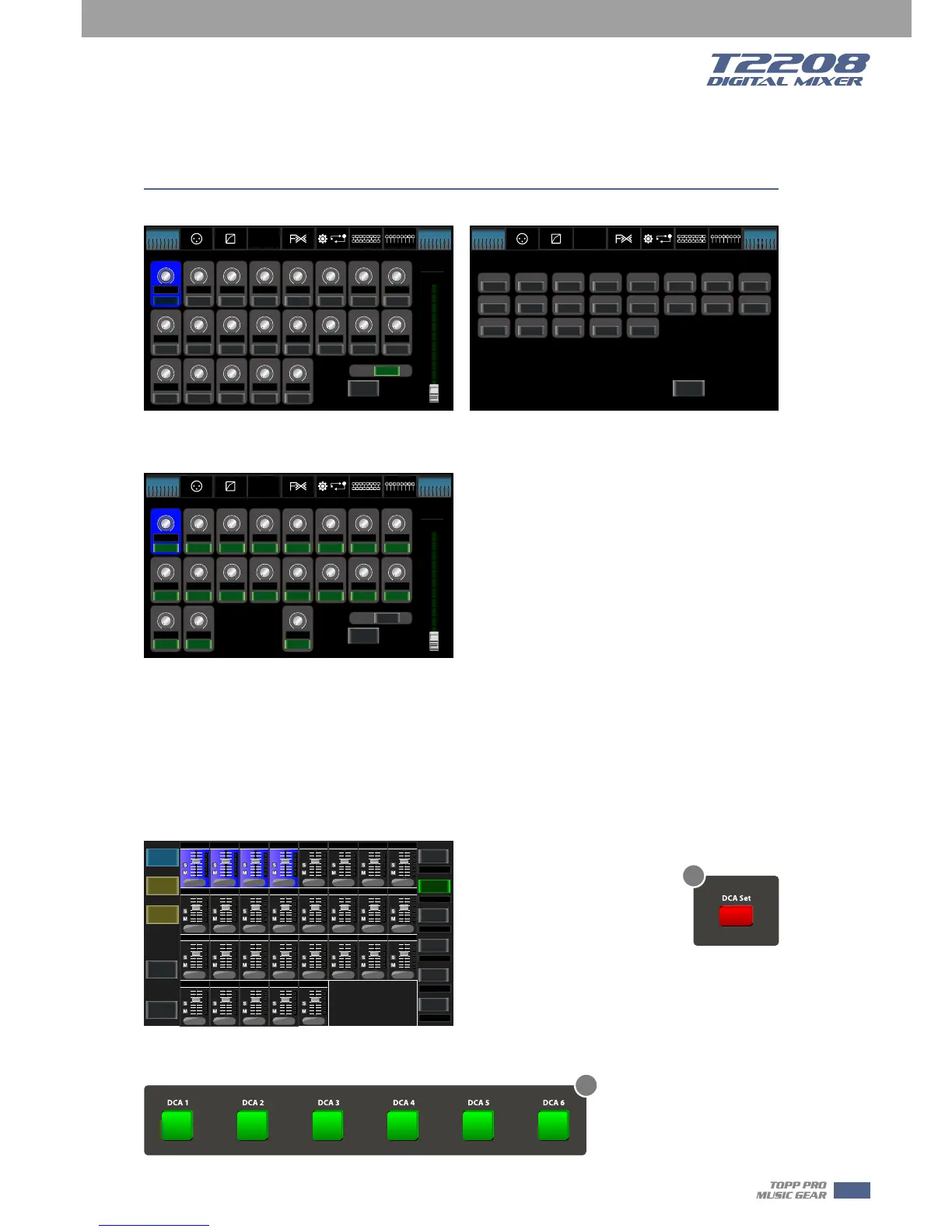 Digital Control Audio(DCA) can realize group assignment. DCA volume control will always leave