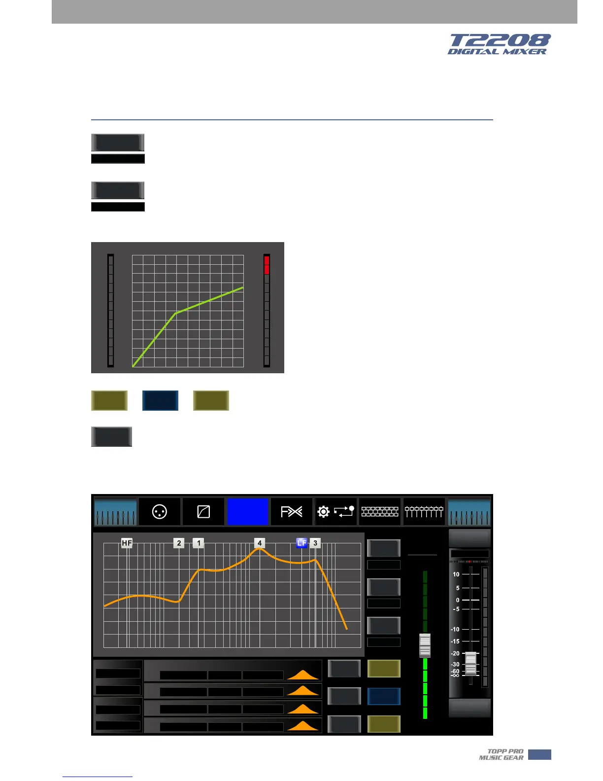 Touch it to set the compression ratio for the selected channel. The ratio determines