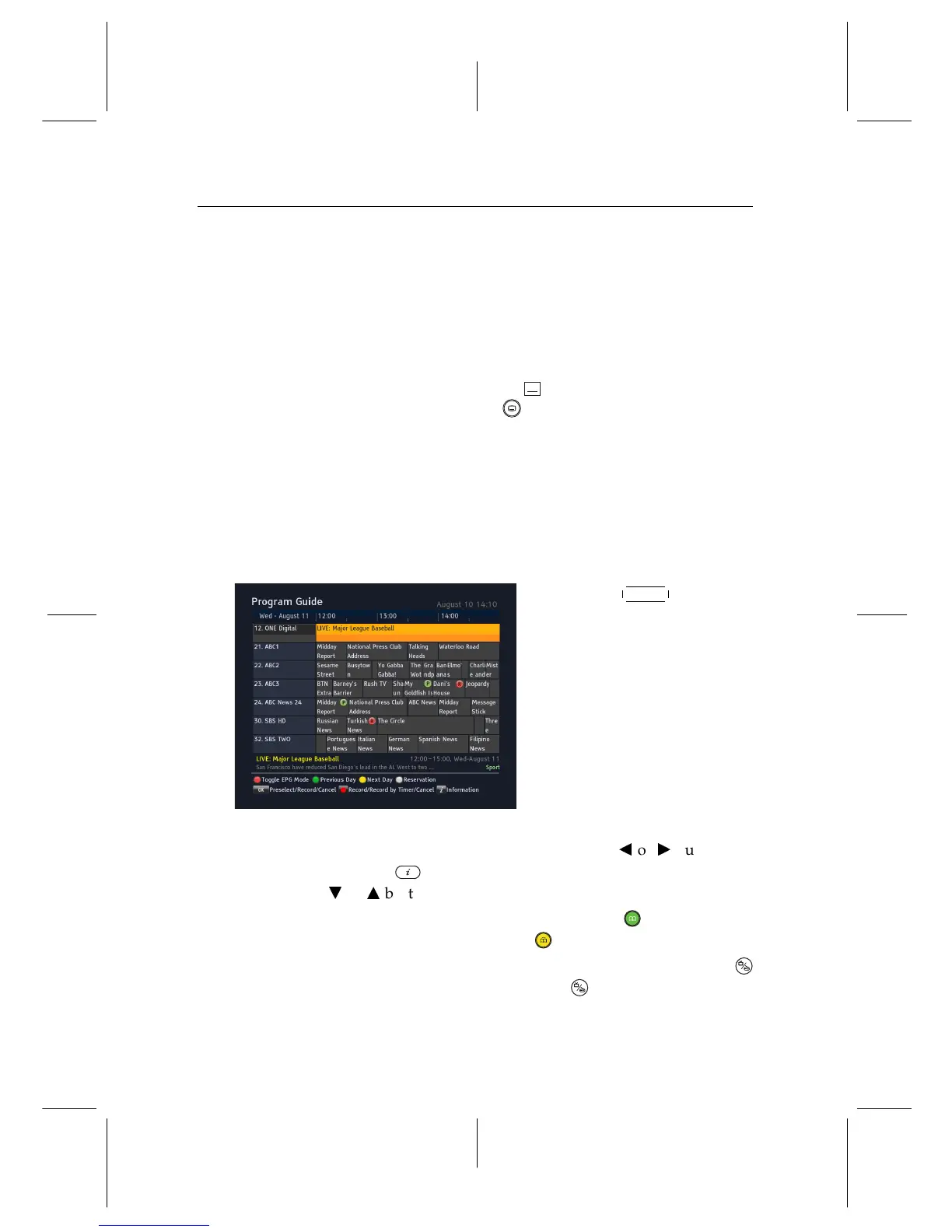 To see the programme guide for radio broadcasts, press the