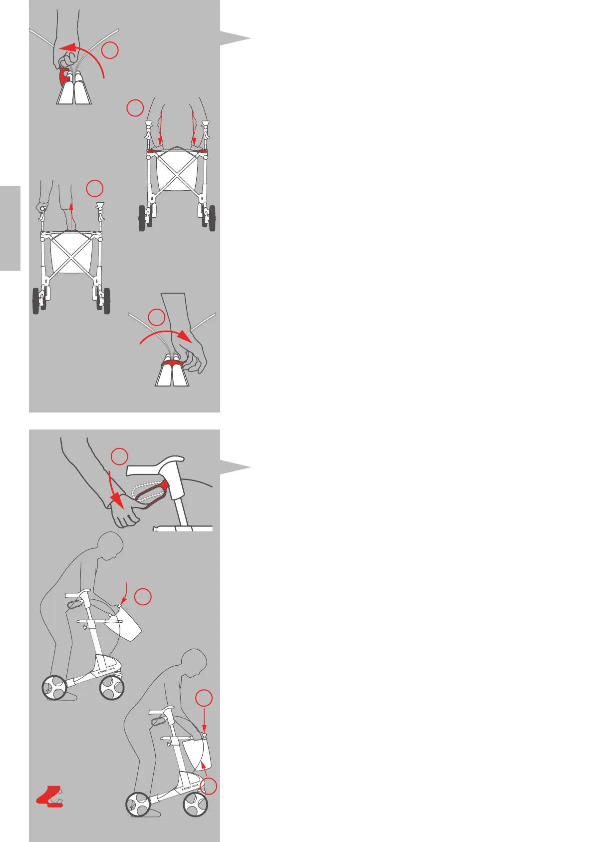 strap on the seat (3). Then push the carrying handles together and