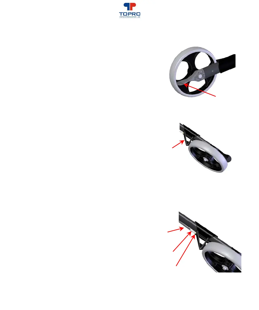 Loosen the nut (3) beside the brake.