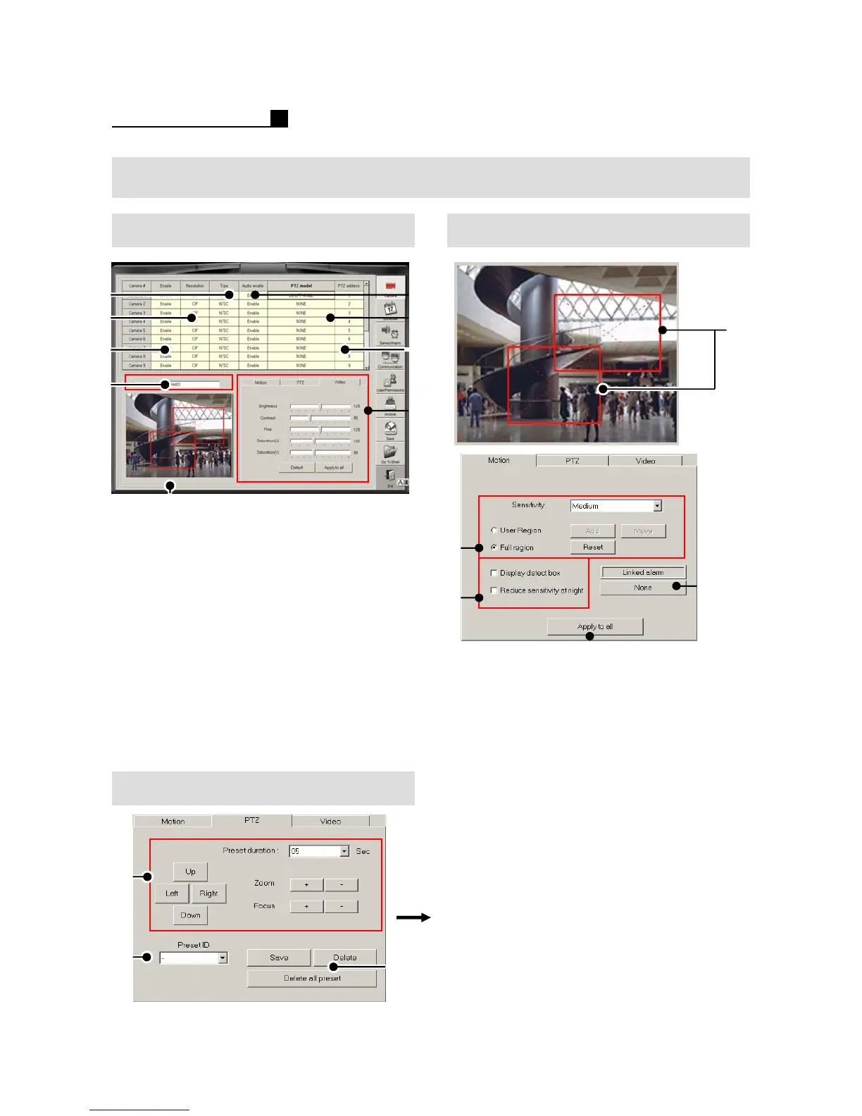 ⑨ Motion, PTZ (Event Tracking),