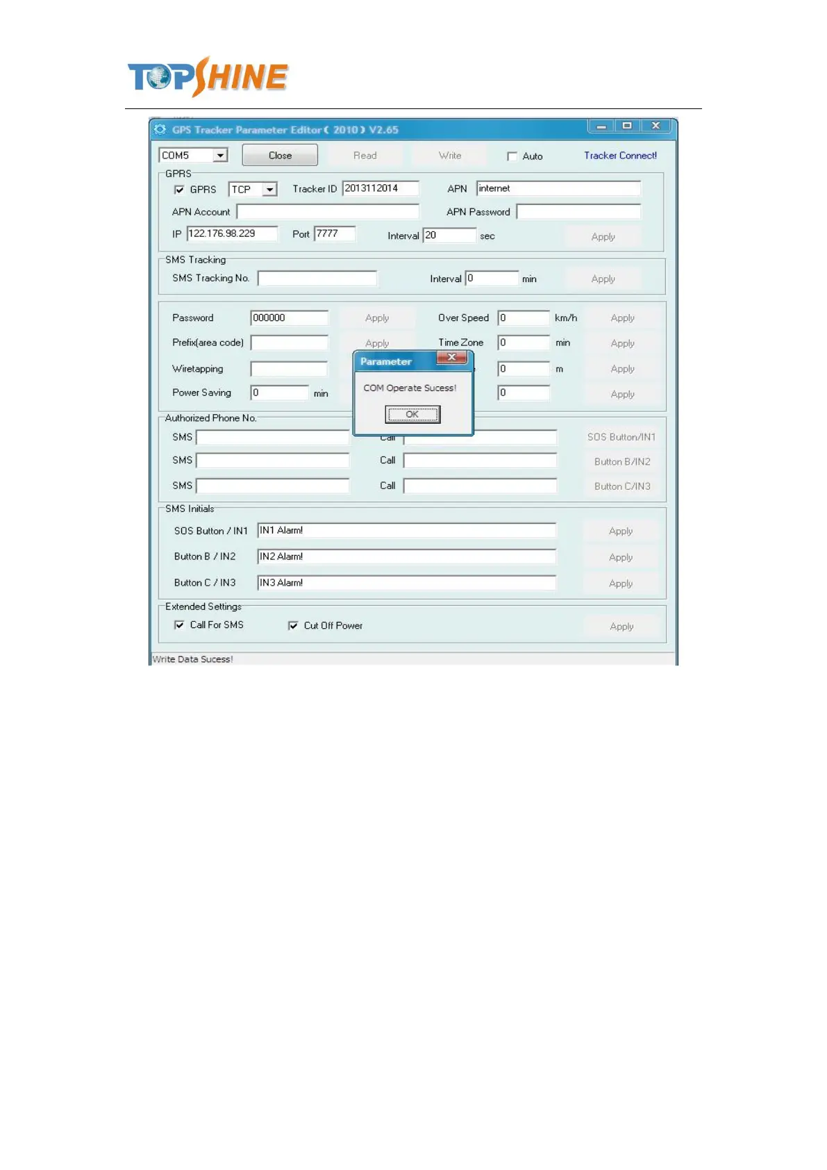 When you finished the GPS Tracker Parameter Editor, then turn off the tracker, pull up the USB