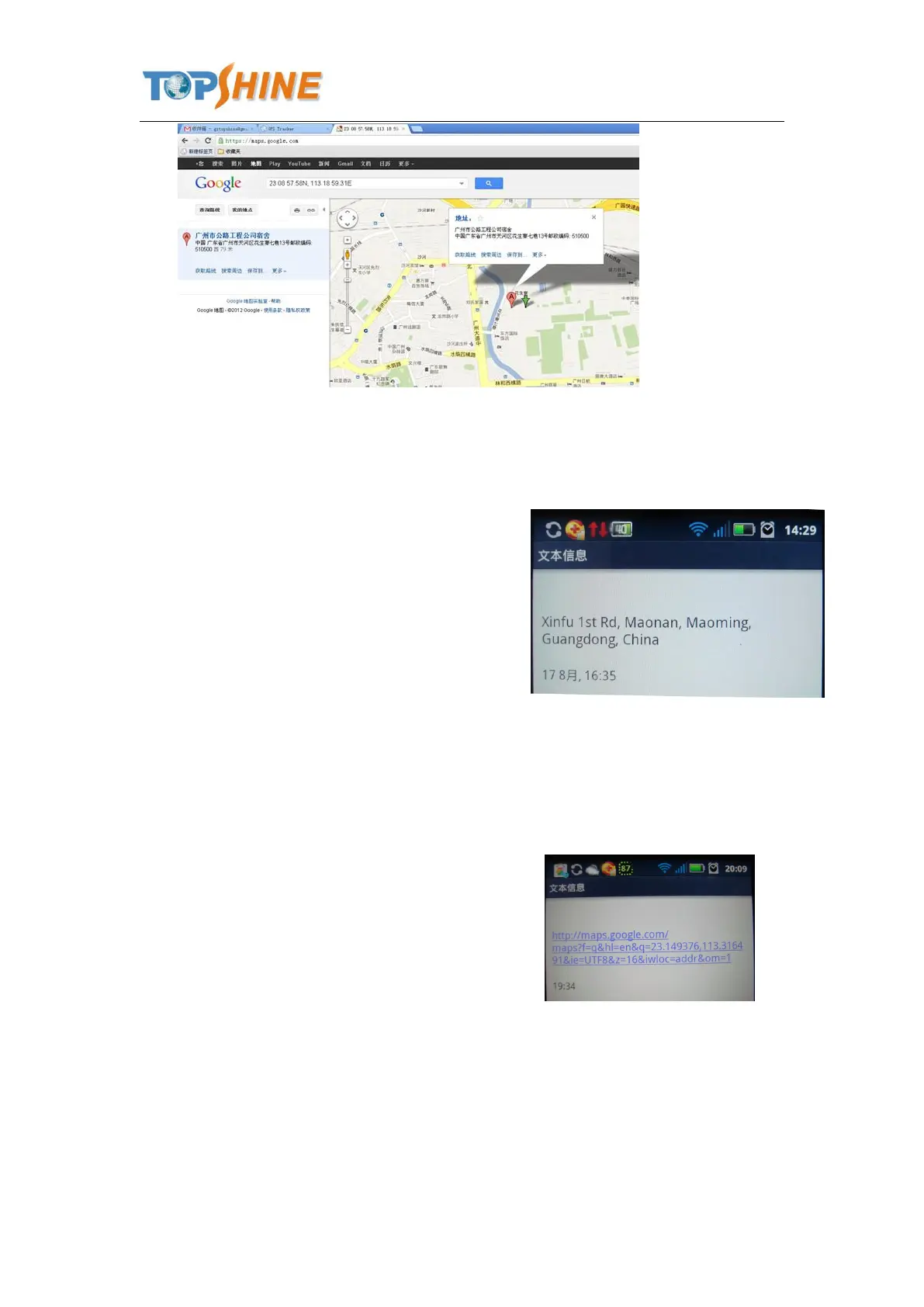 Description: You will get a Google map URL after sent the command, click the URL, then the