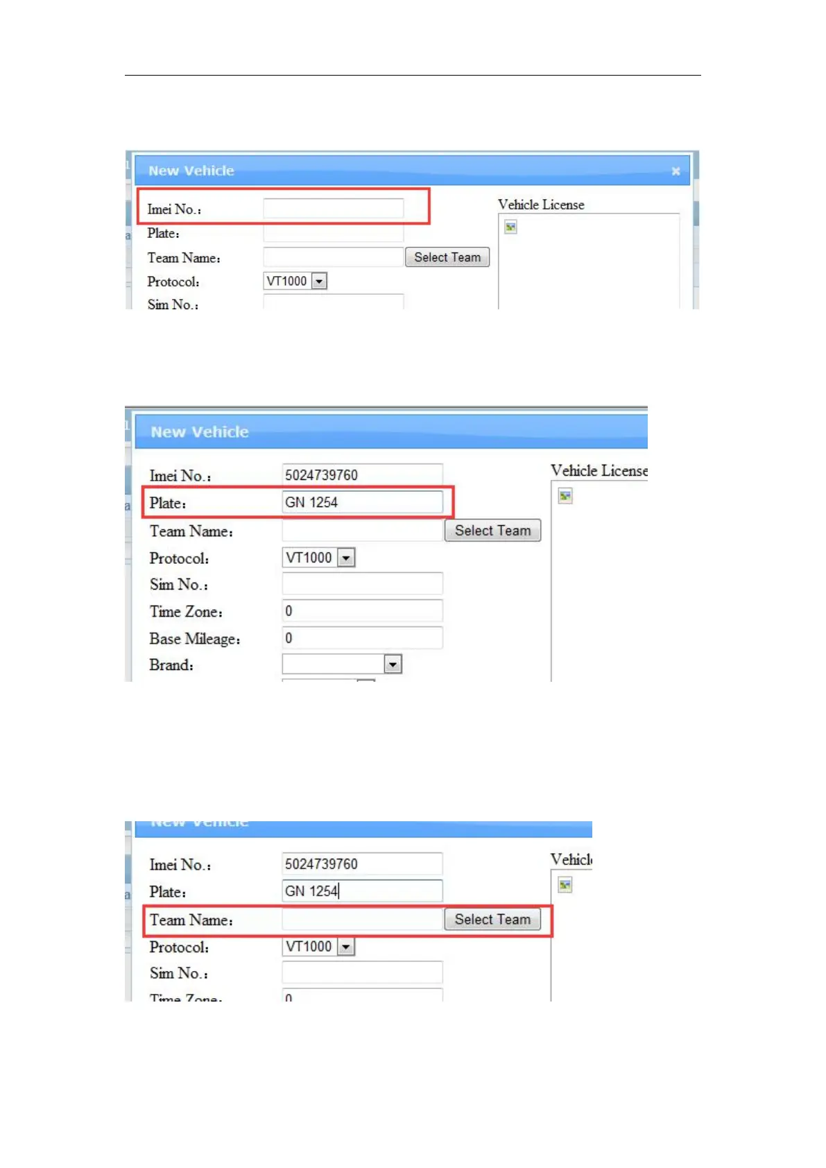 2. Put Vehicle License Plate Number in Plate.