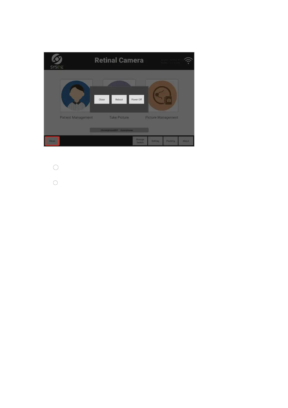 equipment will exit from the program and shut down the computer.