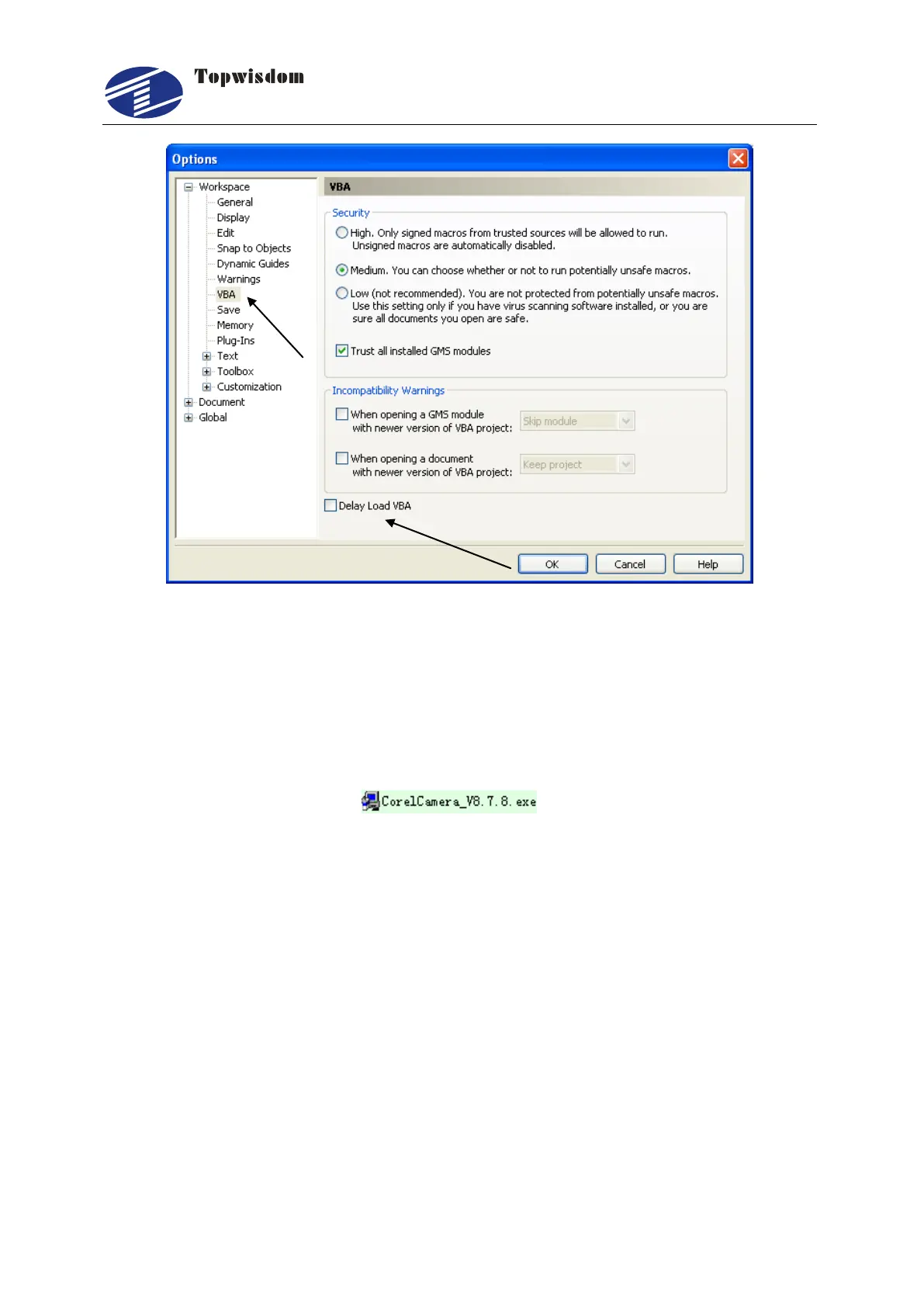 the "Delay Load VBA" at the bottom, the installation is thoroughly completed.