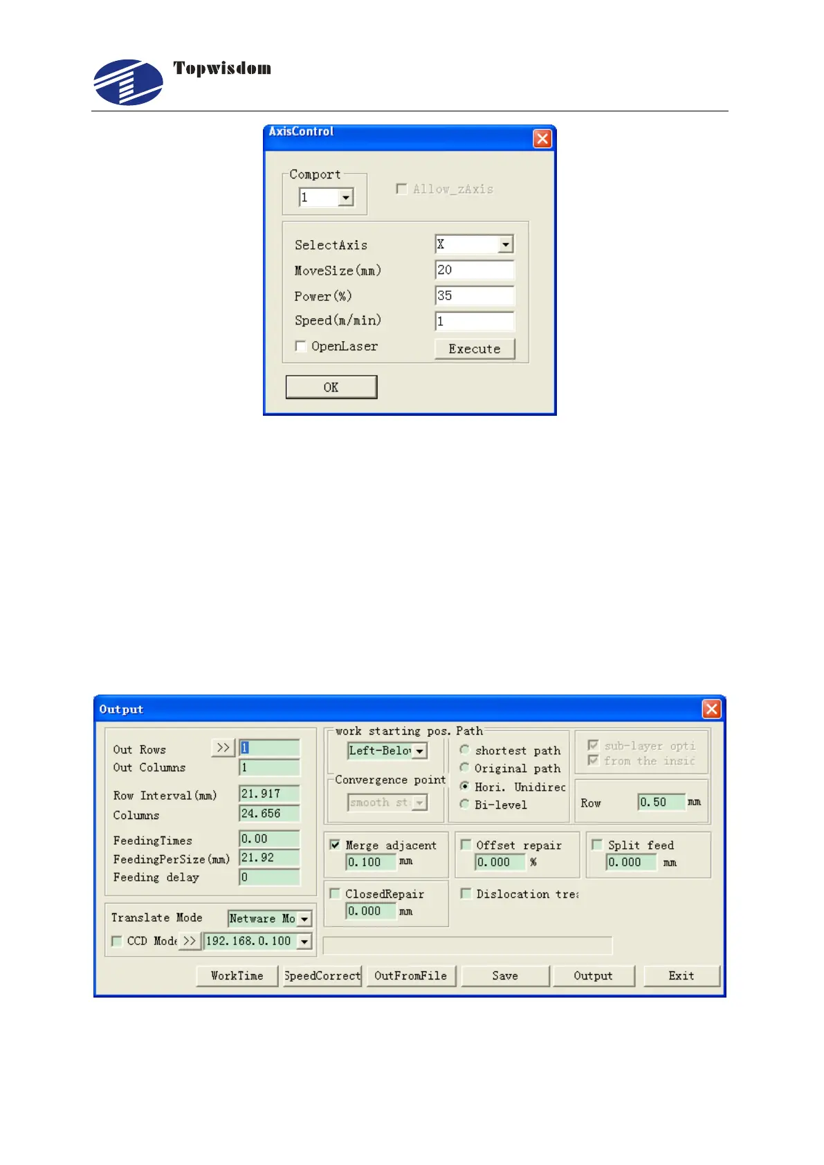box and select the OpenLaser check box. Click Execute button to move. If you want