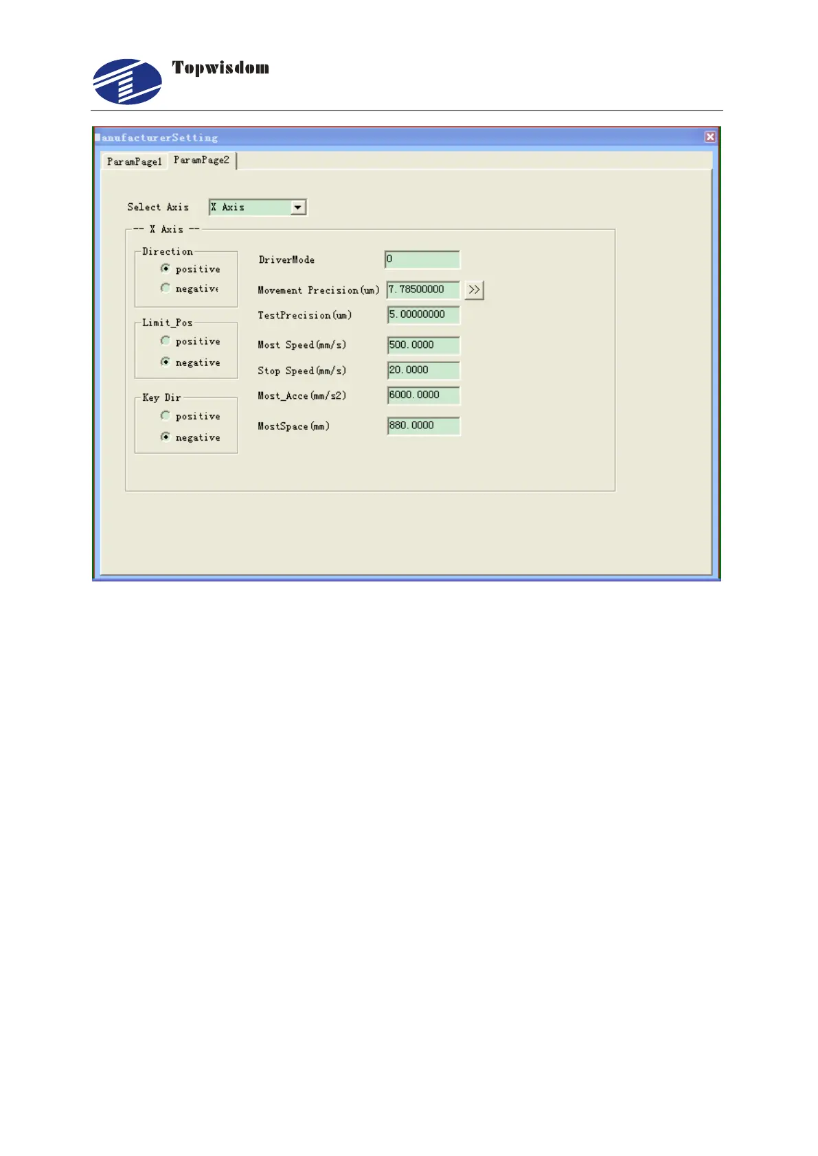 Movement Precision (µm): The move distance per pulse, the unit is µm. The