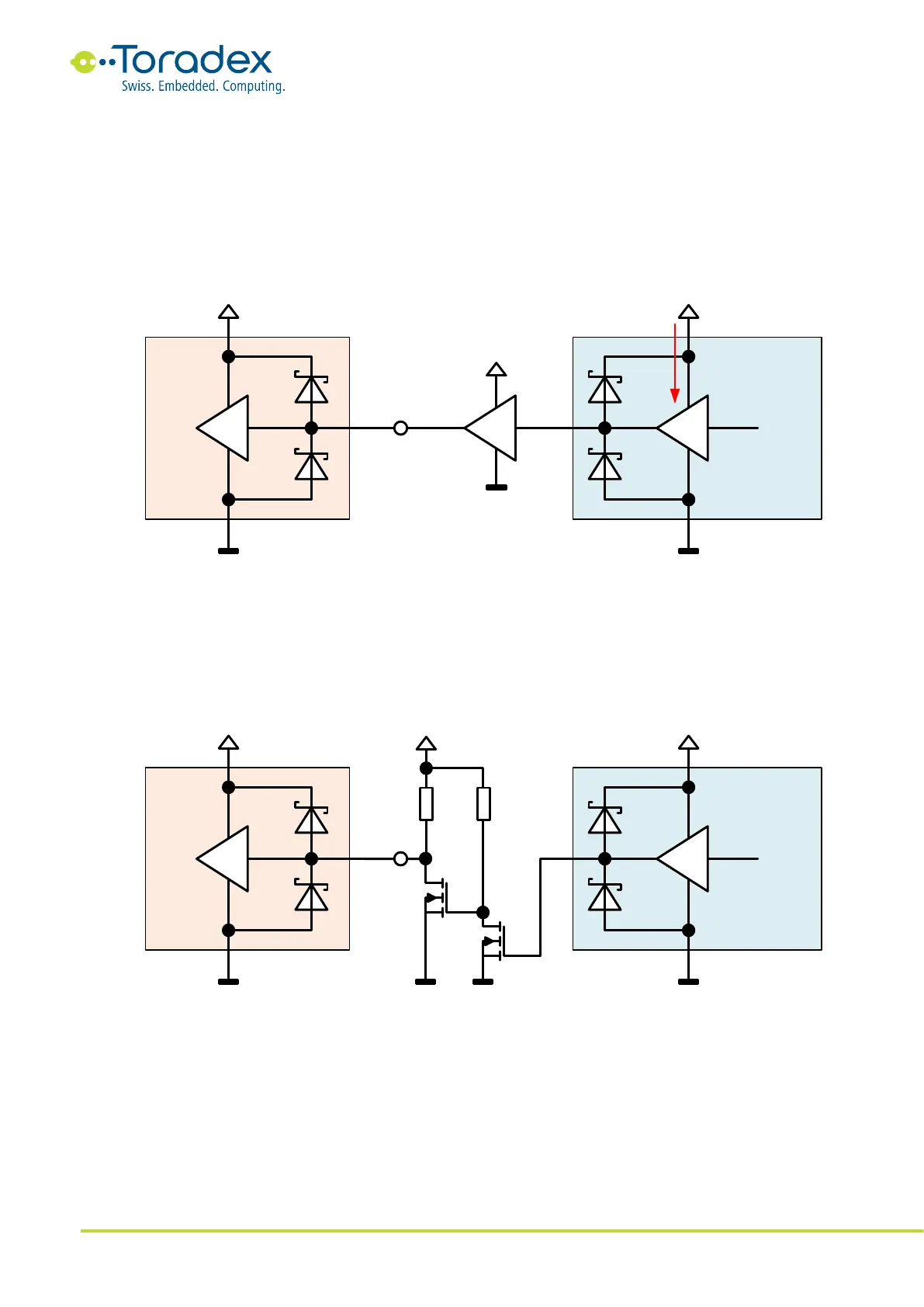 For low-speed signals, two transistors and two resistors can be used for blocking backfeeding. The