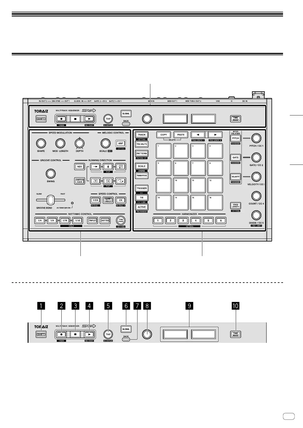 TORAIZ SQUID - Teilenamen; Bedienpult