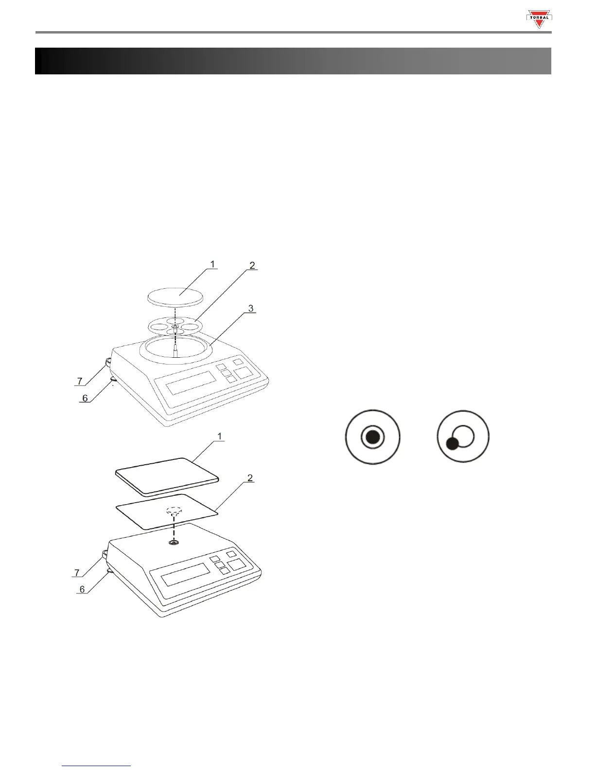 seating it on the pan support located in the middle of the scale. Once the pan base has been installed, carefully place