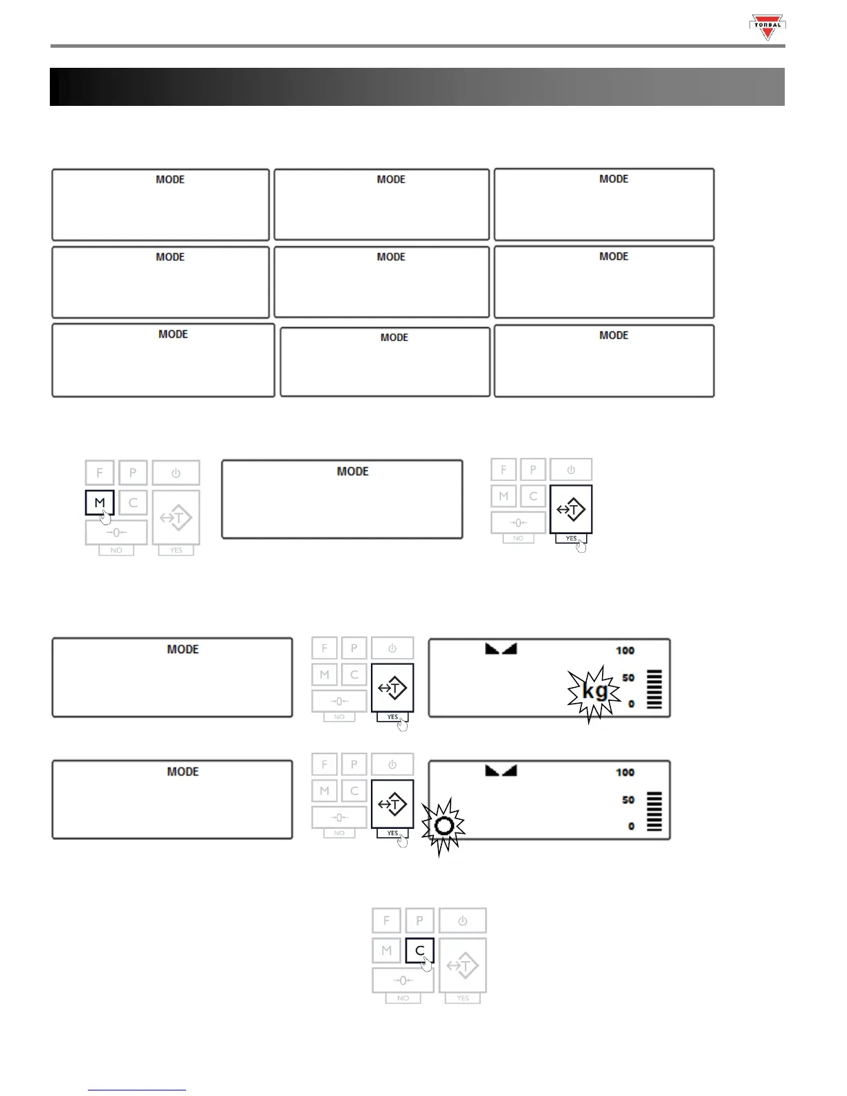2. The scale will display available units of measure sequentially. When the desired unit is displayed, press the “T” (Yes)