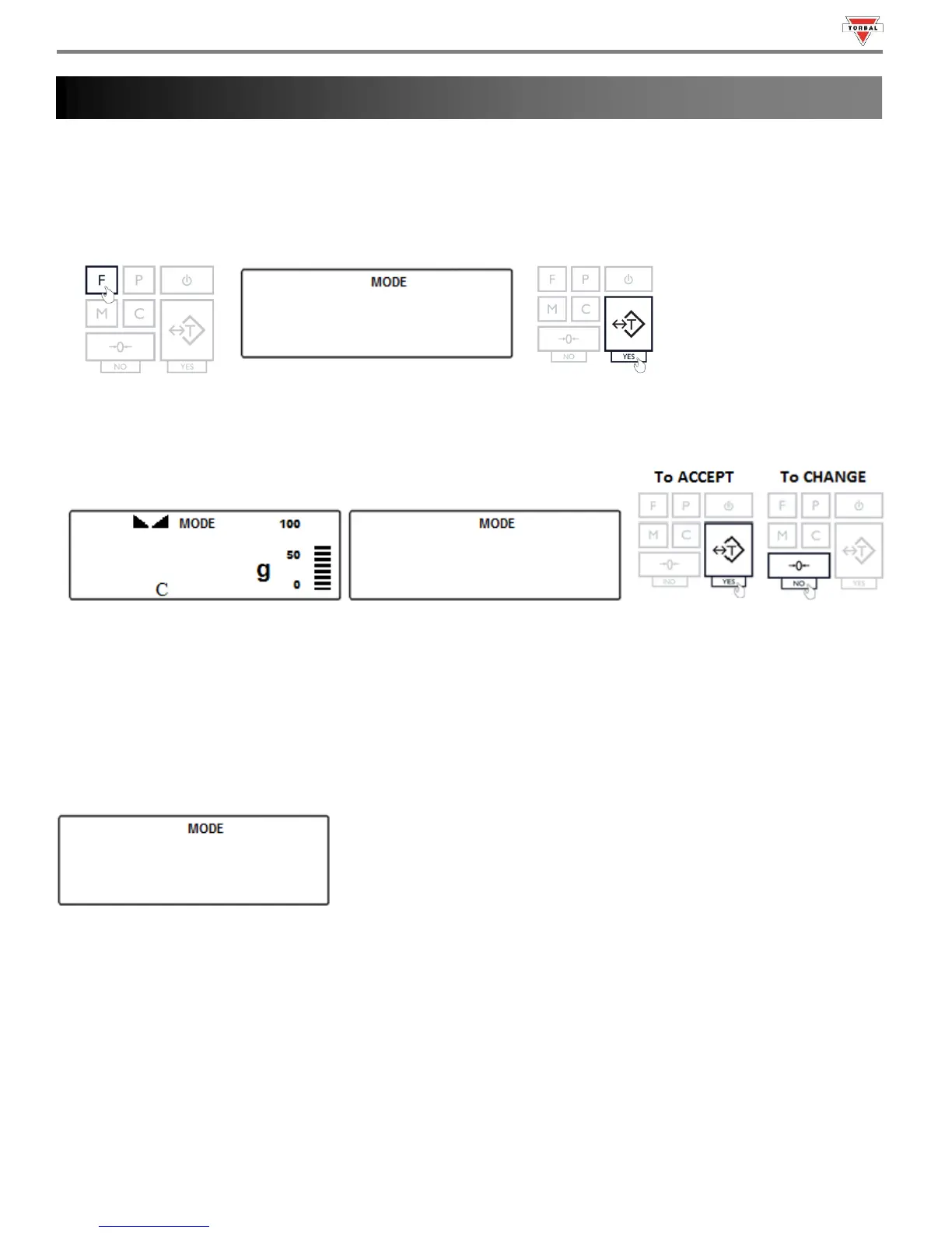 To enter a weight, use the following keys: the “0” (NO) key to increment a digit; “T” (YES) key to accept and go to