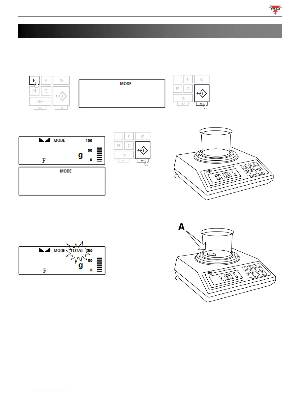 1. To enter Totalizing Mode, press the “F” key. Select “” by pressing the “T” key.