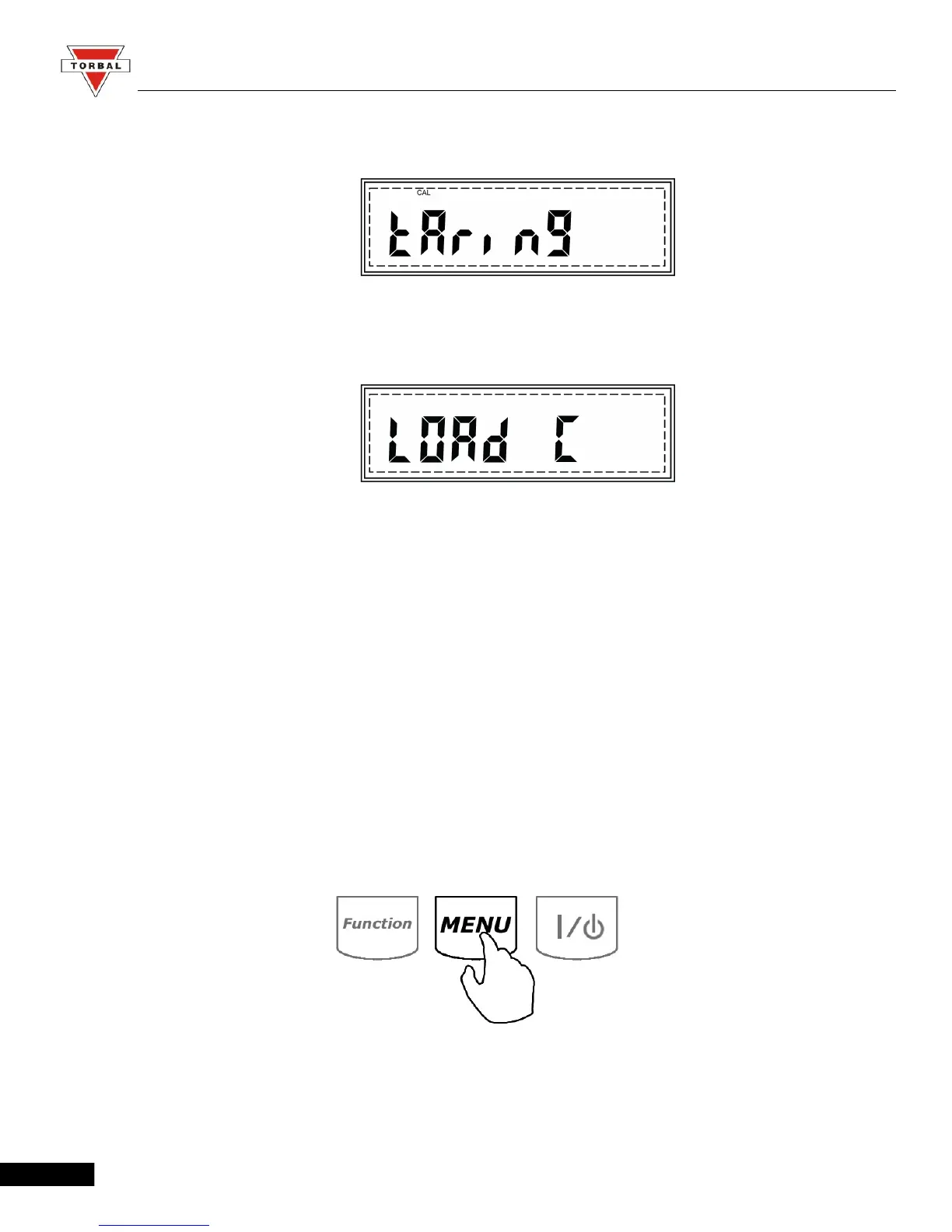 6. Once the scale tares, command “LOAD C” will be displayed, followed by “C” indicating that