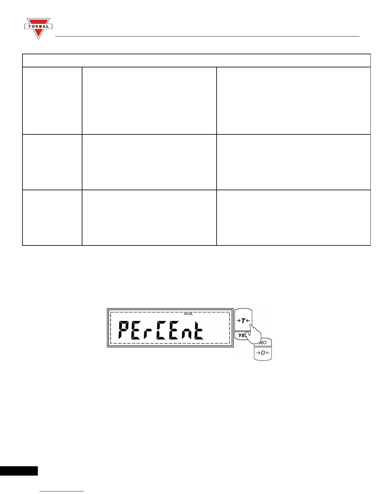 1. To enable percent weighing, press the “T” (YES) key when Percent is displayed