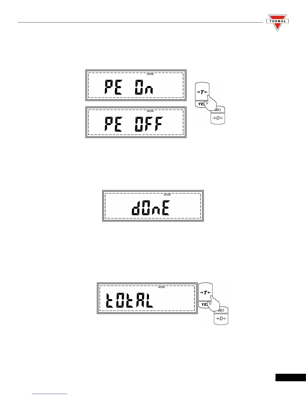 2. Commands Pe On and Pe OFF will be displayed sequentially. To enable percent weighing