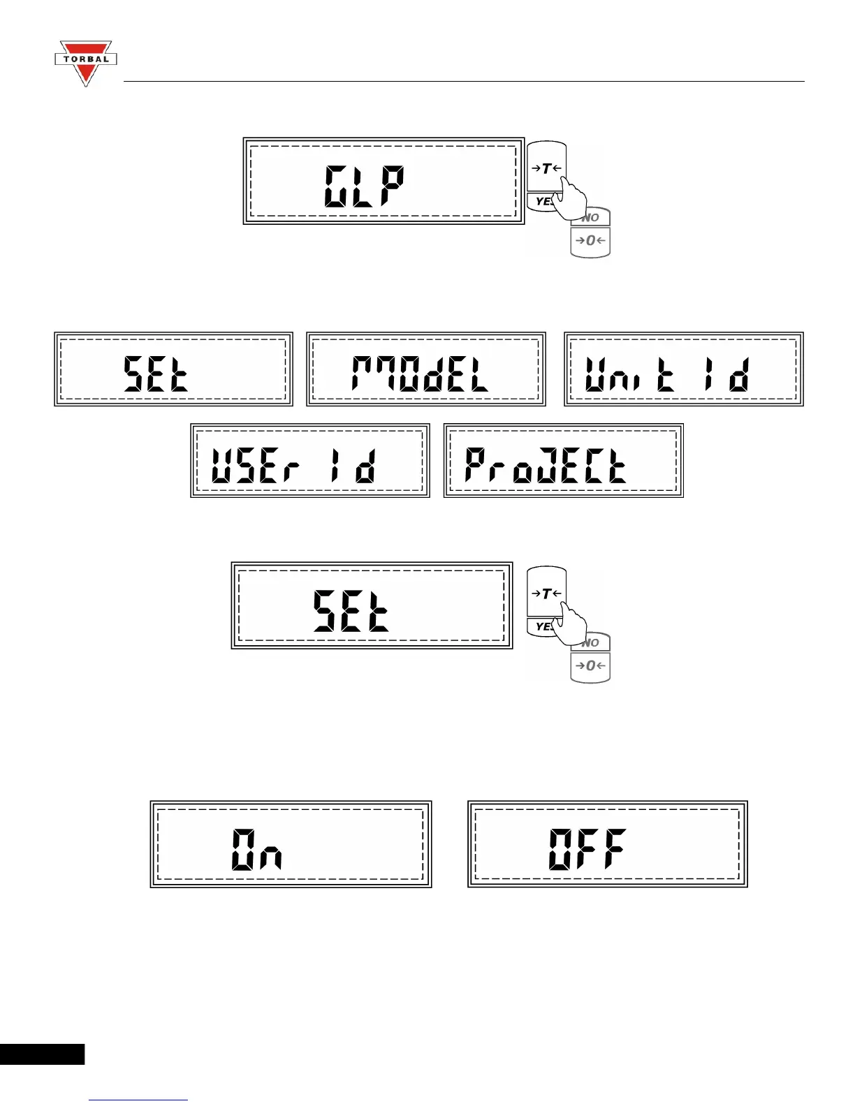 4. To enable or disable GLP press the “T” (YES) key when command SET is displayed.