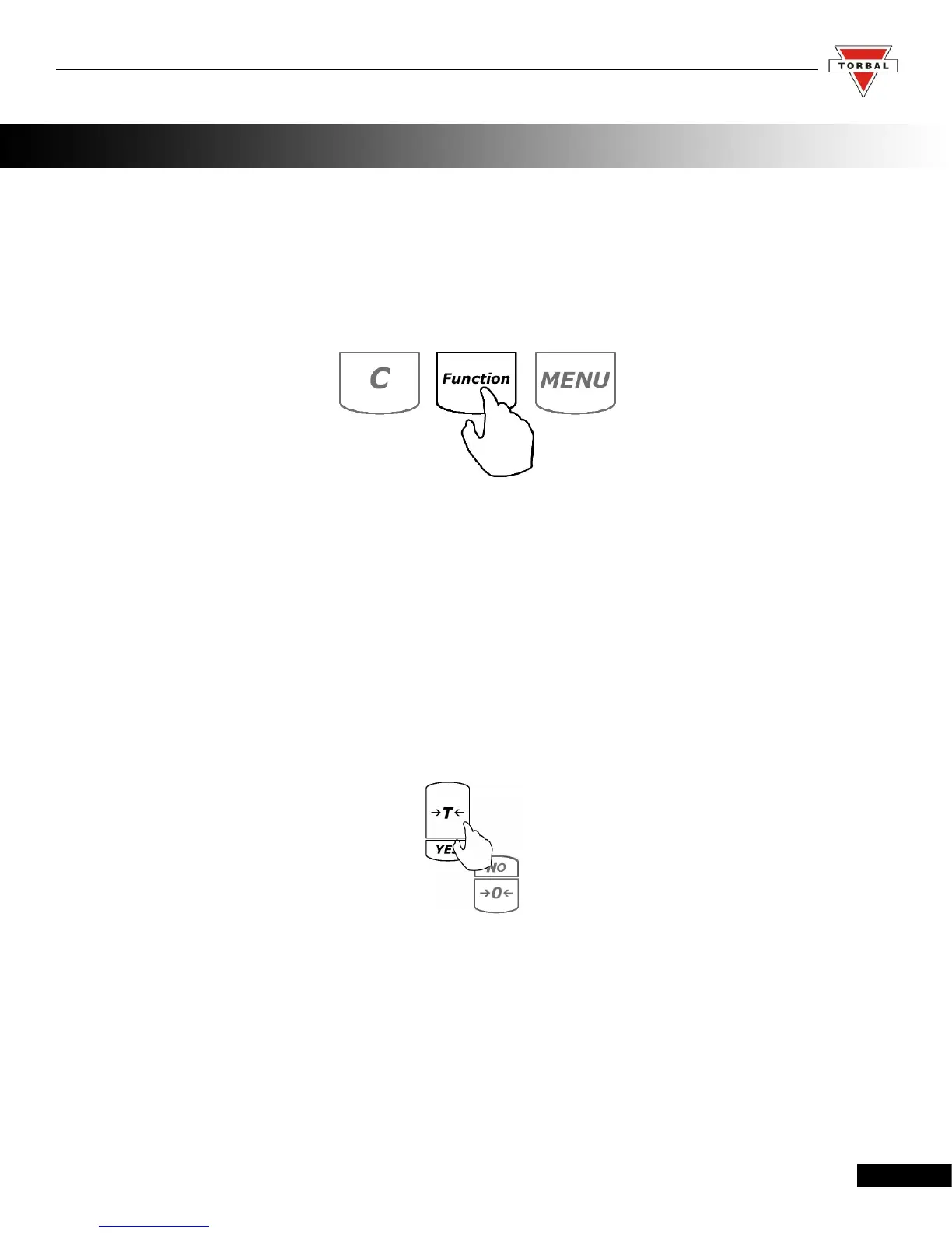 Menu by pressing the “Function” key. When WEIGH is displayed, press the “T” (YES) key.