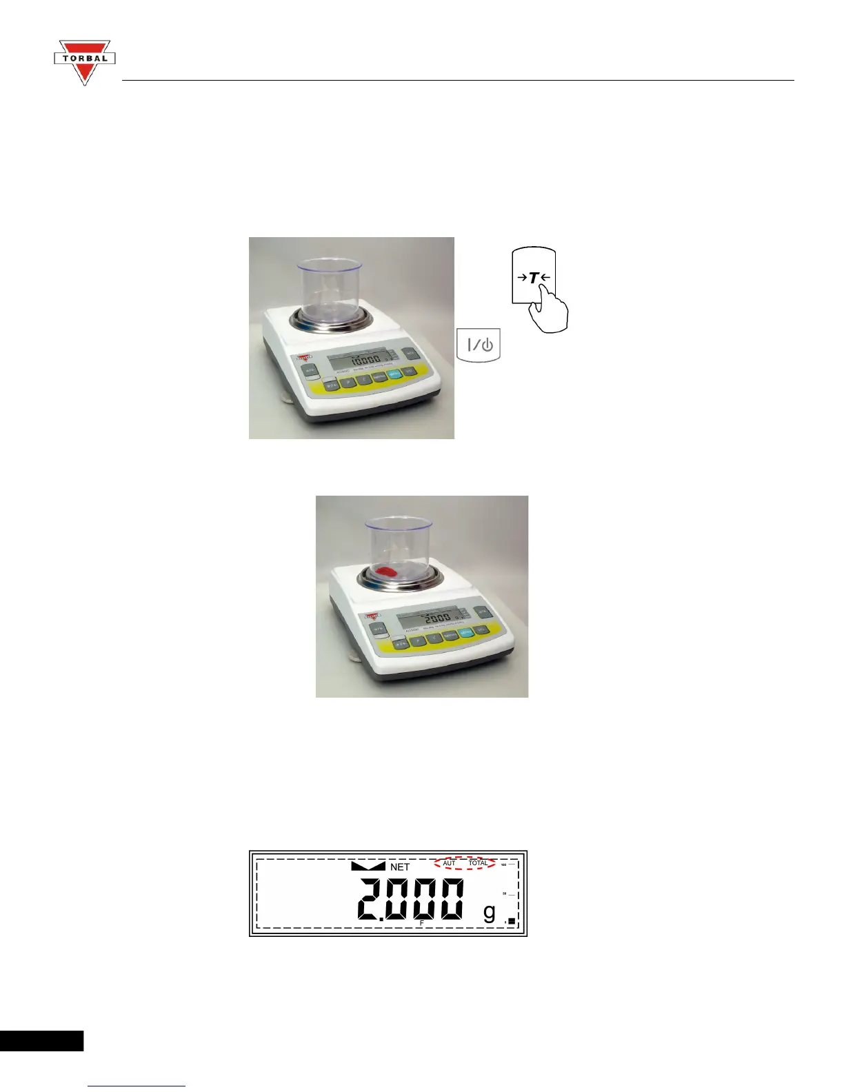 stabilizes, the TOTAL indicator will appear on the display, signaling that the weight has been added to