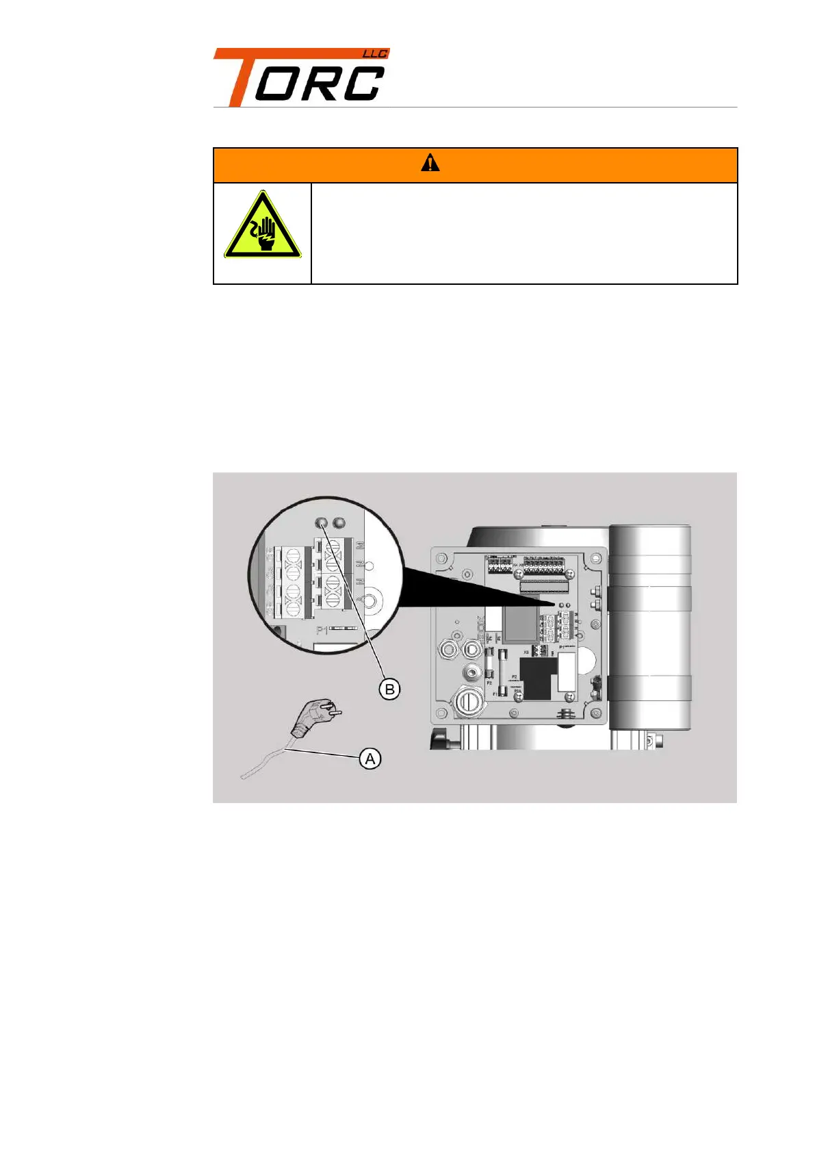 The LED (B) lights up permanently with correct energy supply.