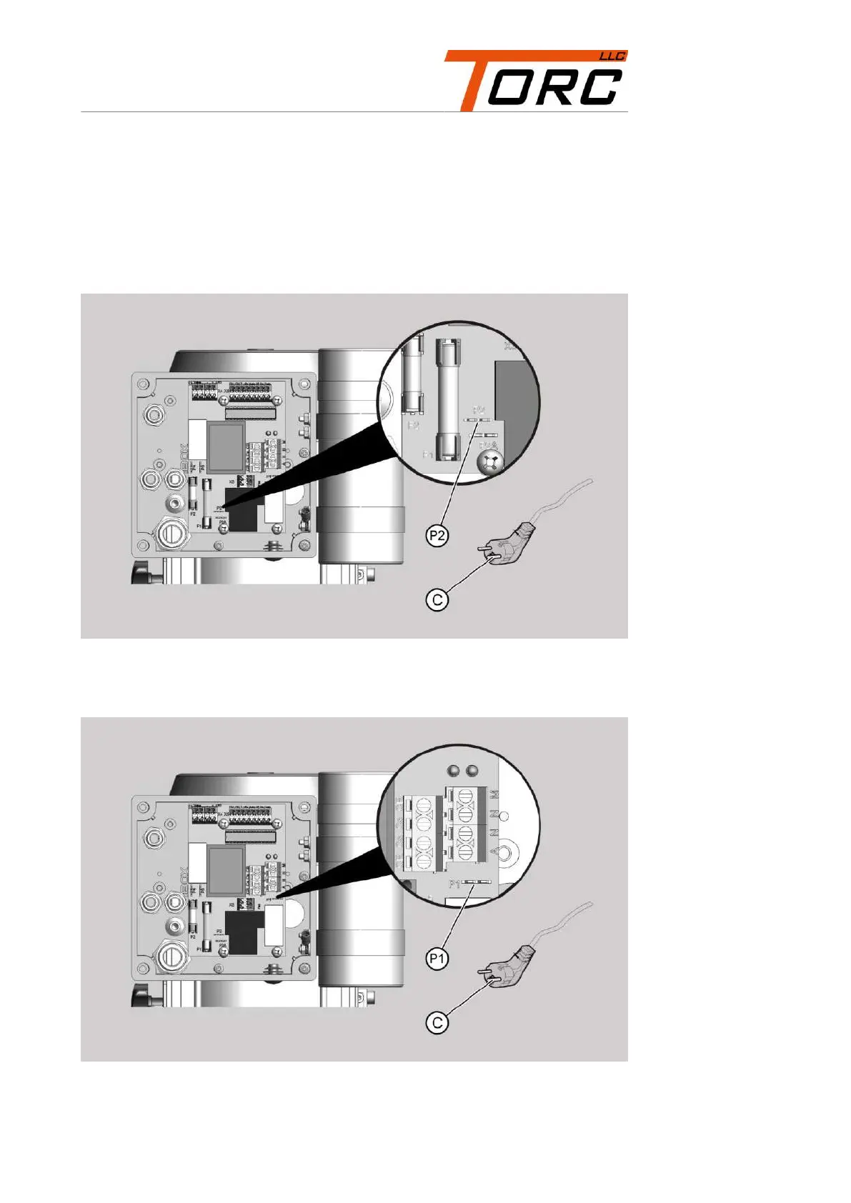 Connect a continuity tester to the brown wire (P2) and the mains plug (C).