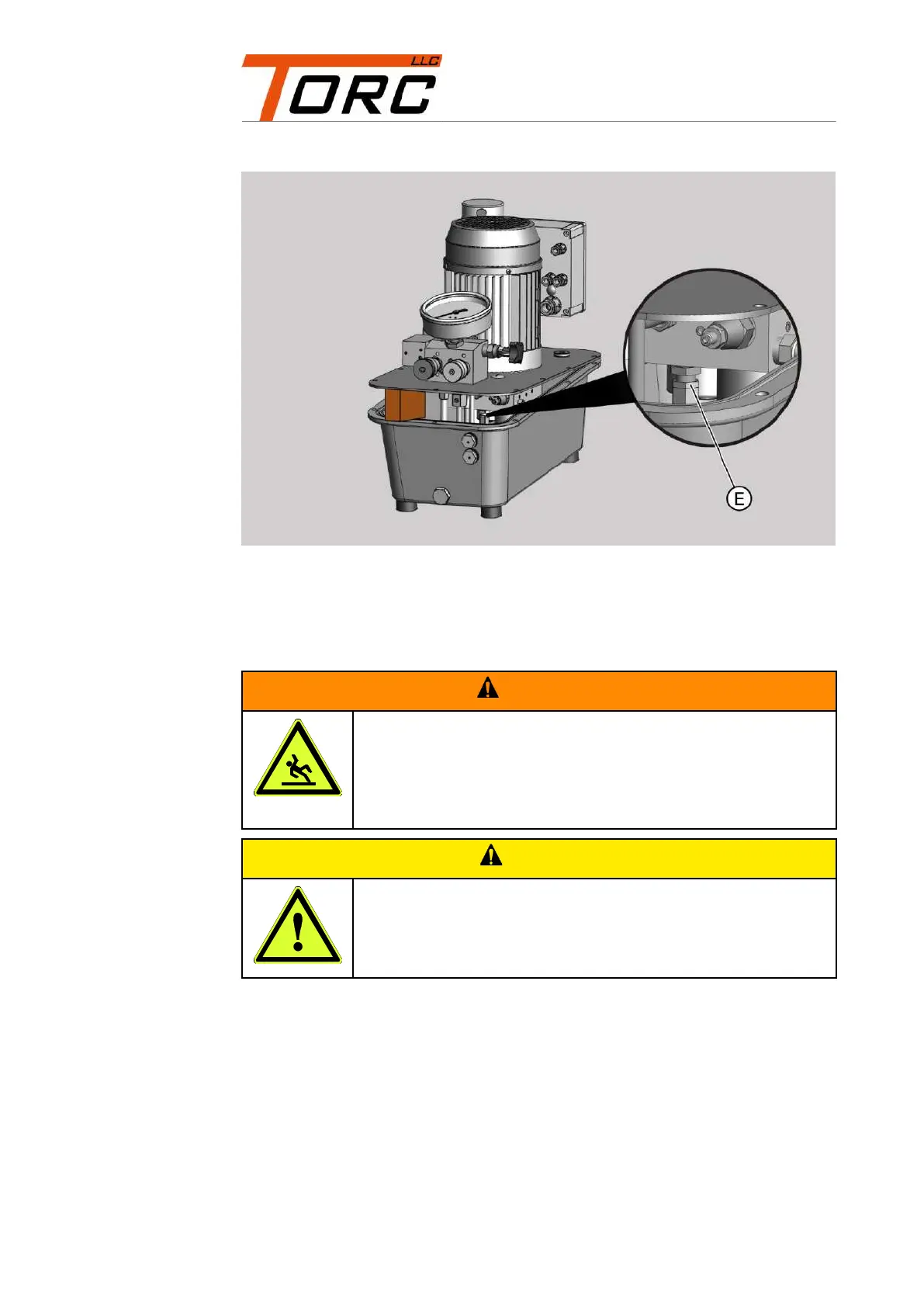 Check whether oil is dripping from the maximum pressure valve (E).