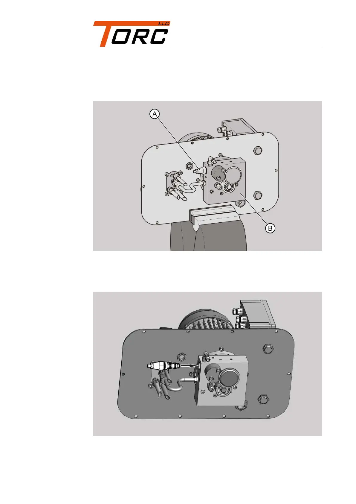 Unscrew the low-pressure cut off valve (A) from the pump flange (B) with a