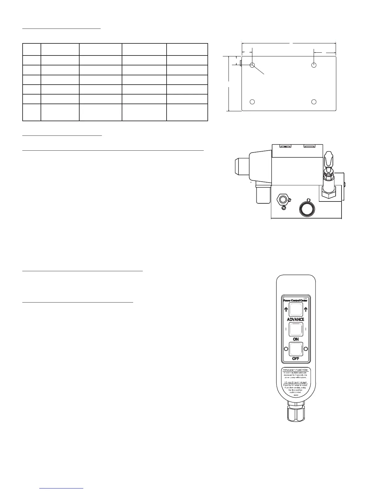 Refer to the chart for mounting dimensions to secure the pump to a xed surface.