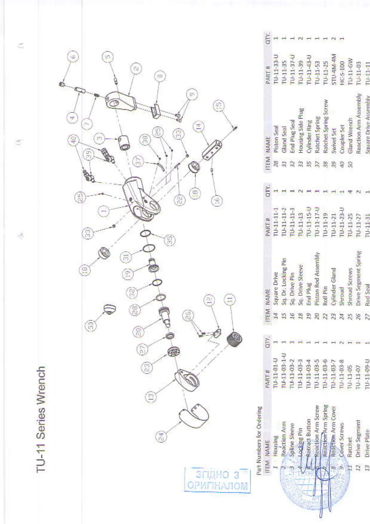 TorcUP TU Series - TU-11 Series Wrench Parts Diagram