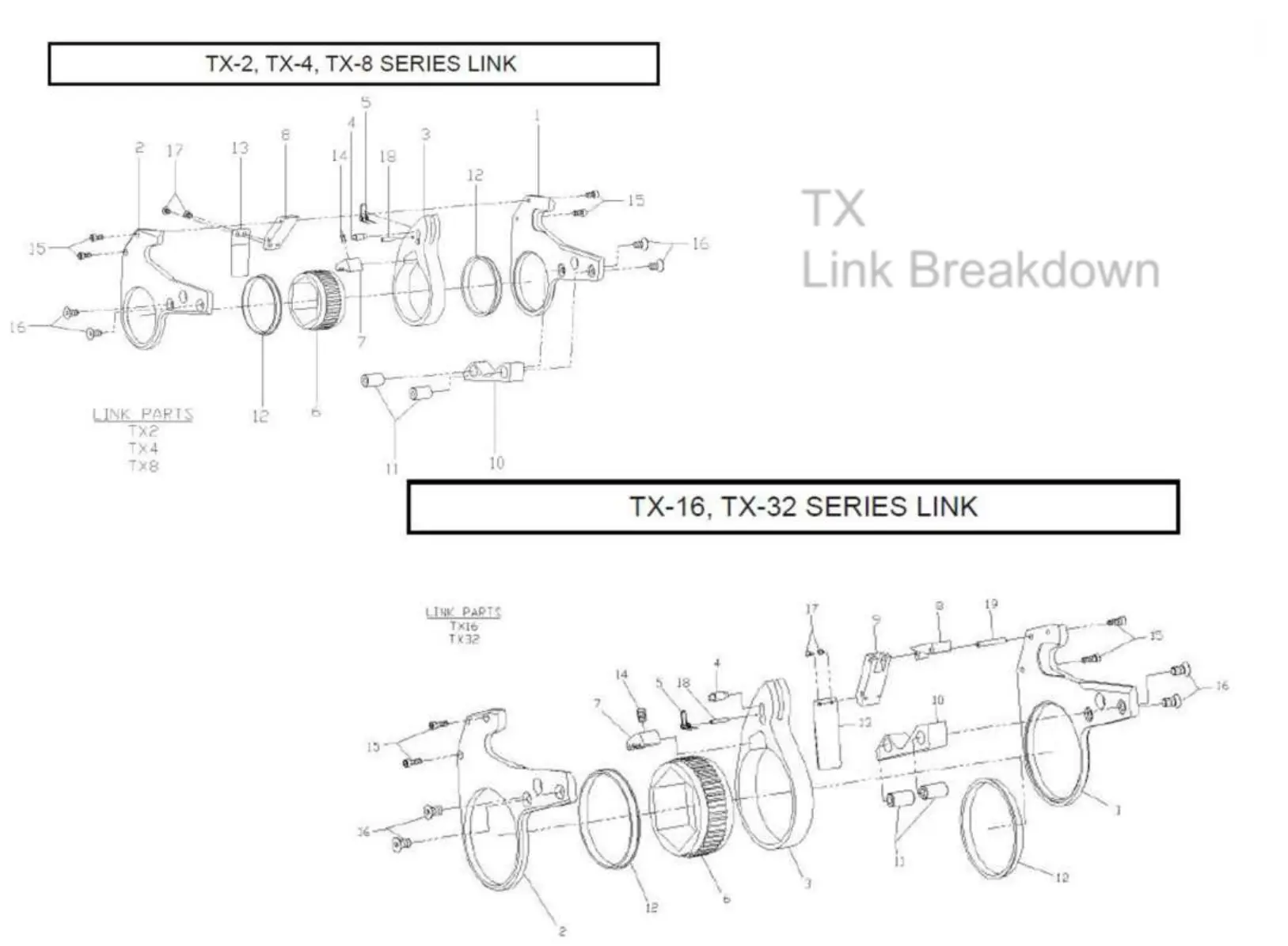TorcUP TX LINK Series - TX Series Link Exploded View Diagrams