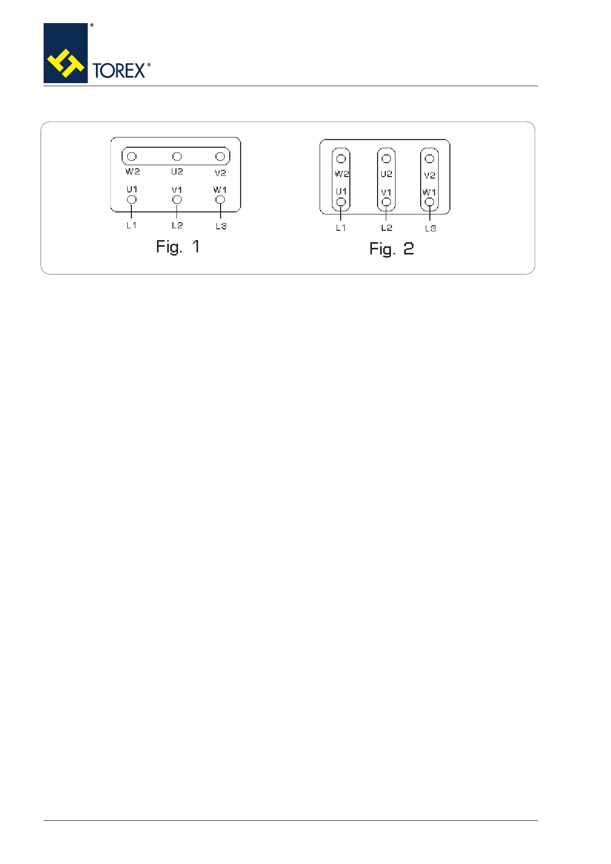 The star connection is obtained by connecting together terminals W2, U2, V2 and powering terminals