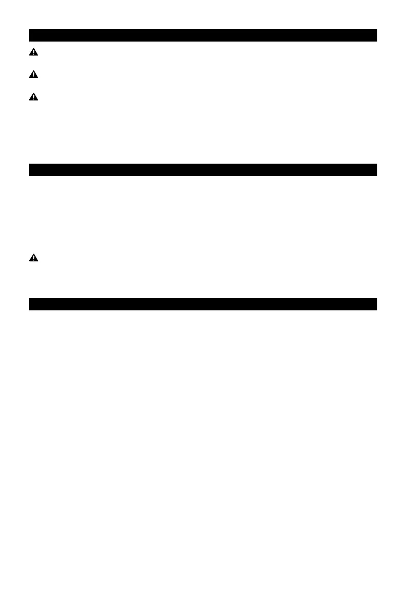 • Inspect the work area before each use. Make sure it is free and clear of any potential hazards.