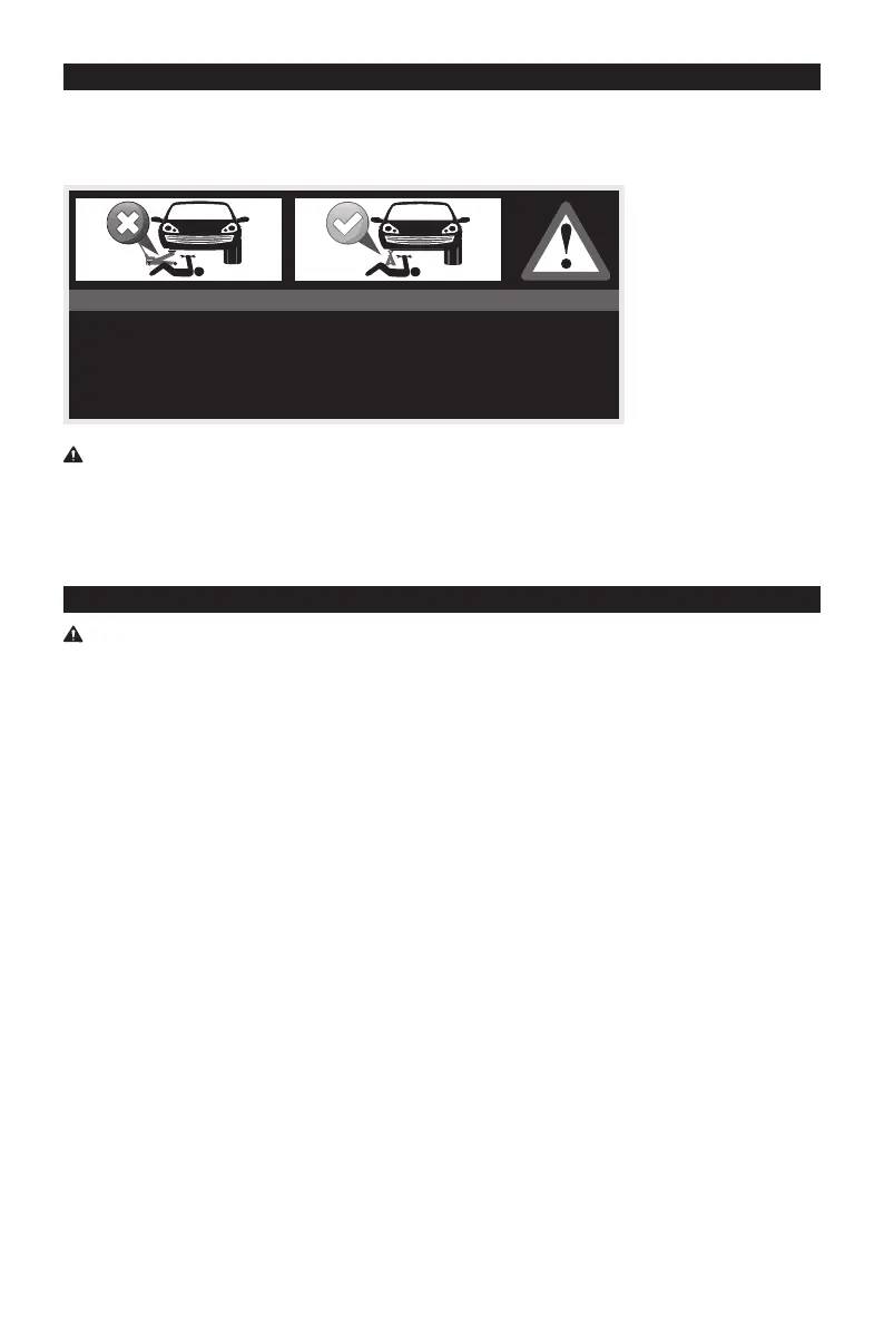 6. Lift only on areas of the vehicle as specied by the vehicle manufacturer.