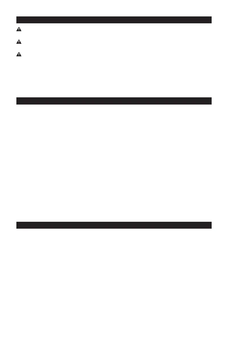 • Inspect the work area before each use. Make sure it is free and clear of any potential hazards.