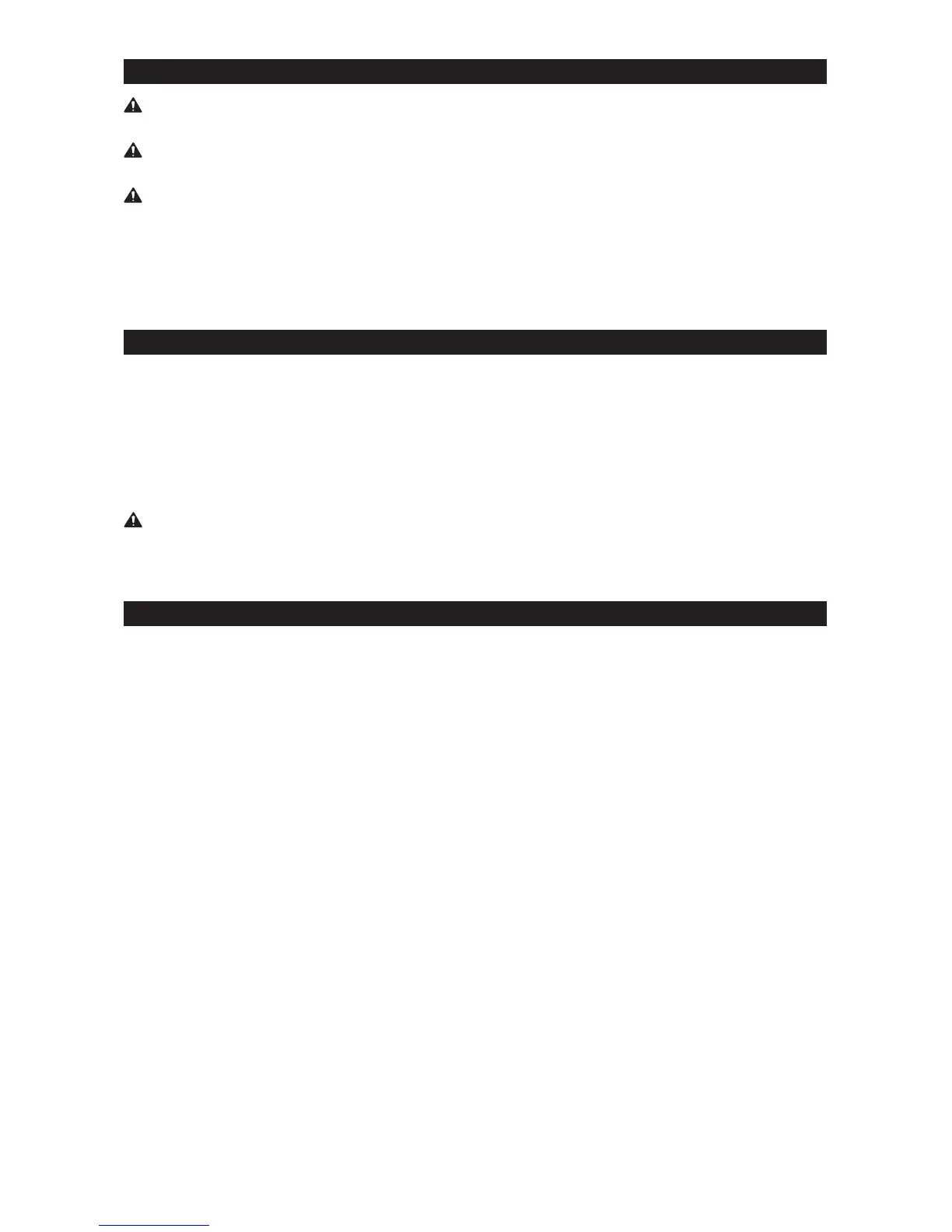 • Inspect the work area before each use. Make sure it is free and clear of any potential hazards.