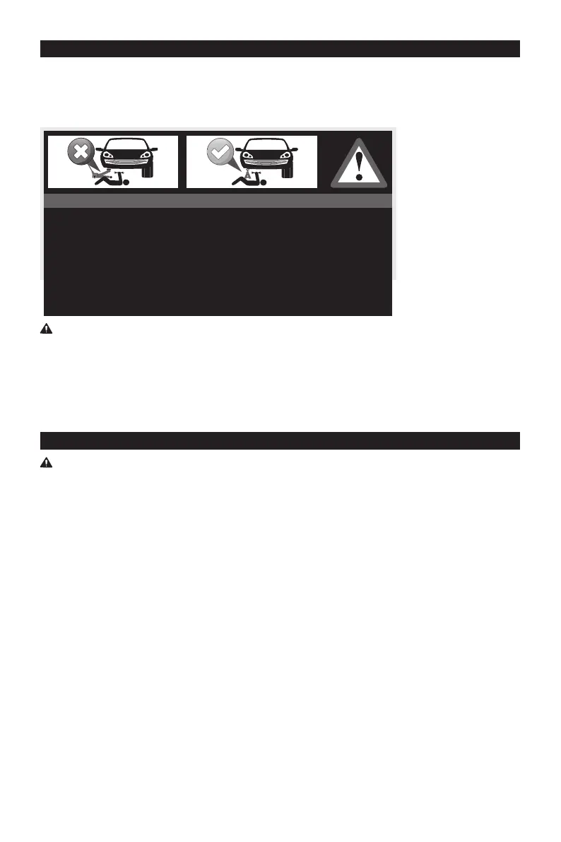 9. Ne vous placez pas et ne laissez personne se placer sous le véhicule jusqu’à ce qu’il soit supporté par
