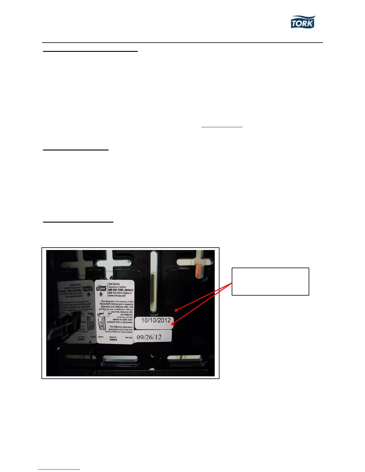 Before contacting Essity, locate and make note of the date code of the dispenser. The date code for