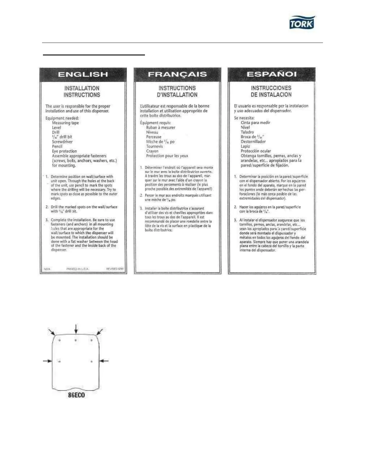 Tork 86ECO - Dispenser Installation and Mounting
