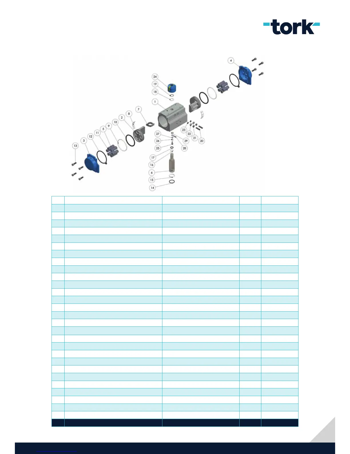 Tab 1. Part list of Spring Return Actuators (RA032-RA040-RA060-RA080-RA100-RA120)