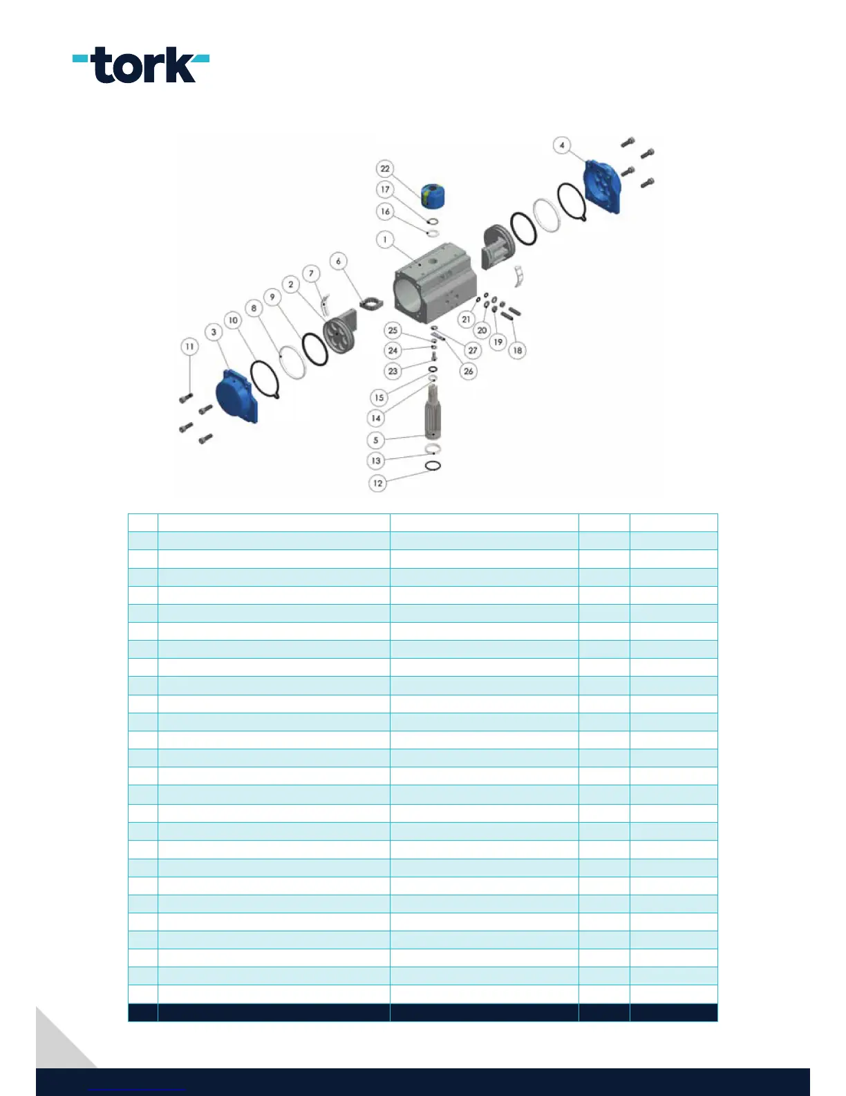 Tab 2. Part list of Double Acting Actuators (RA032-RA040-RA060-RA080-RA100-RA120)