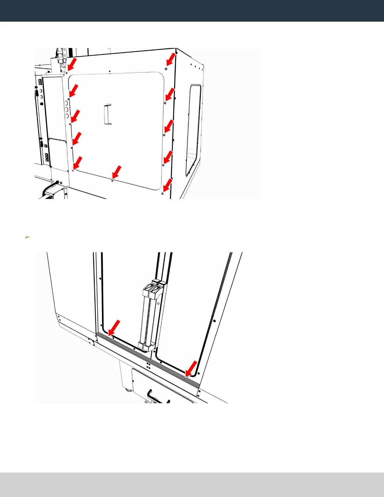 5. Attach the access panel to the left rear panel from the outside of the enclosure with 11 M5 × 0.8 - 10